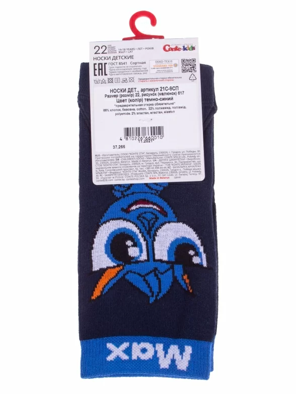 Круглогодичные укороченные детские носки, цвет темно-синий, прикольные, состав: 66% хлопок, 32% полиамид, 2% эластан, фабричный артикул 21С-9СП. Производитель «Conte, Беларусь» под брендом «Conte».