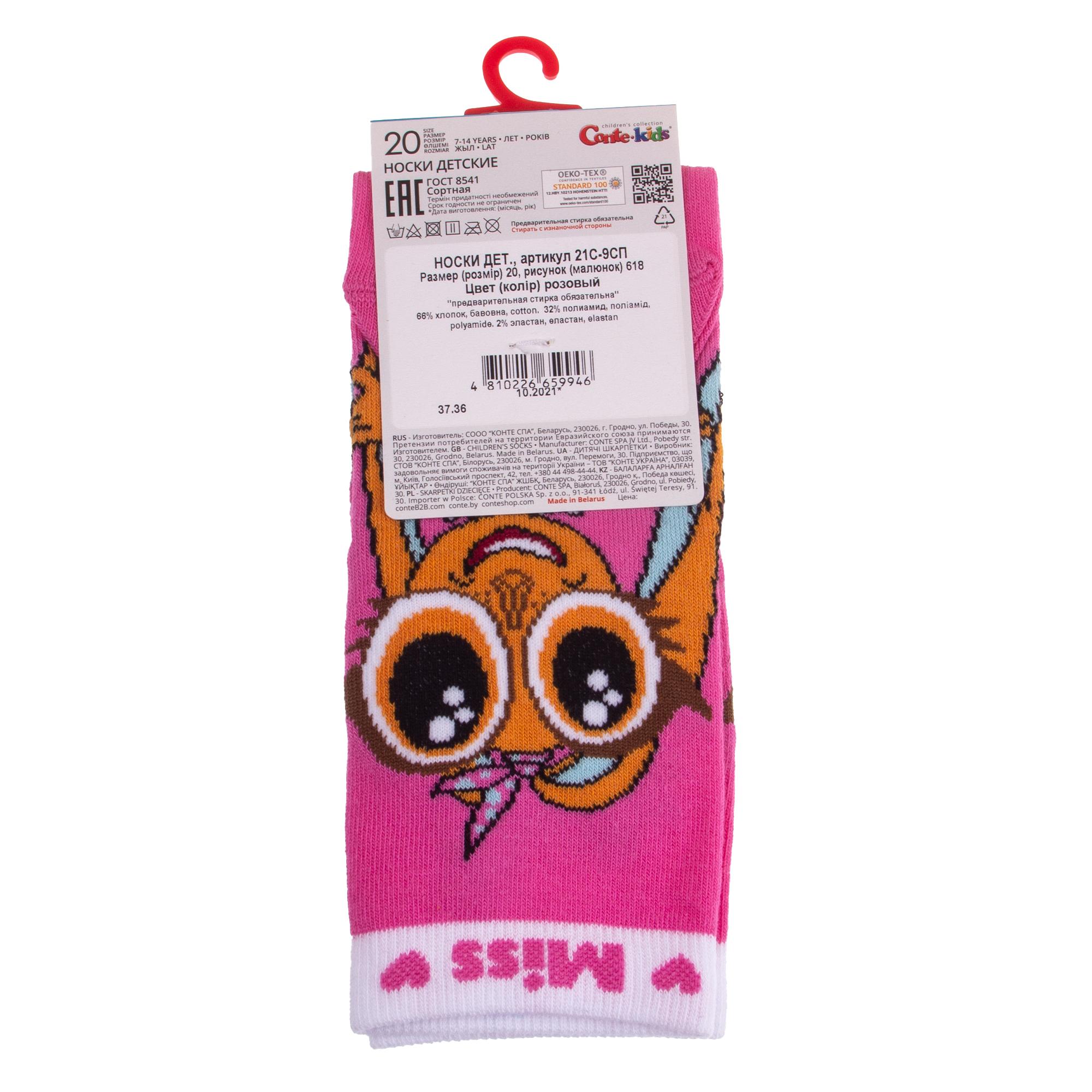 Круглогодичные укороченные детские носки, цвет розовый, прикольные, состав: 66% хлопок, 32% полиамид, 2% эластан, фабричный артикул 21С-9СП. Производитель «Conte, Беларусь» под брендом «Conte».