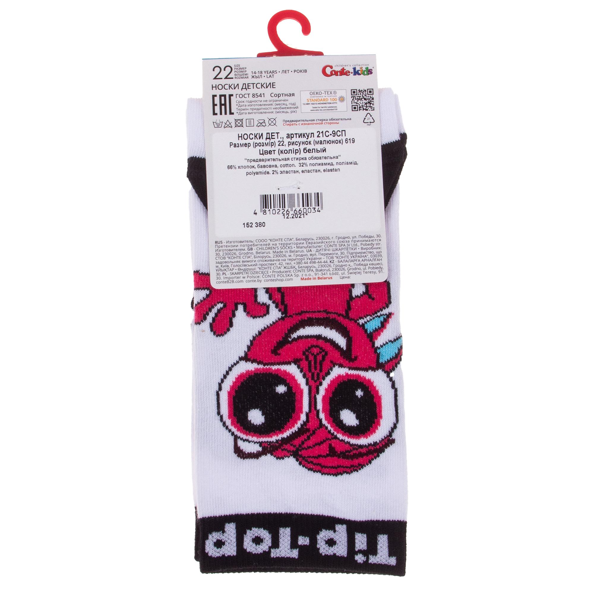 Круглогодичные укороченные детские носки, цвет белый, прикольные, состав: 66% хлопок, 32% полиамид, 2% эластан, фабричный артикул 21С-9СП. Производитель «Conte, Беларусь» под брендом «Conte».