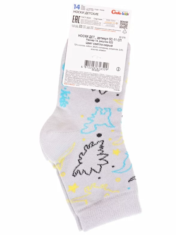 Круглогодичные укороченные детские носки, цвет светло-серый, прикольные, состав: 72% хлопок, 25.5% полиамид, 2.5% эластан, фабричный артикул 5С-11СП. Производитель «Conte, Беларусь» под брендом «Conte».