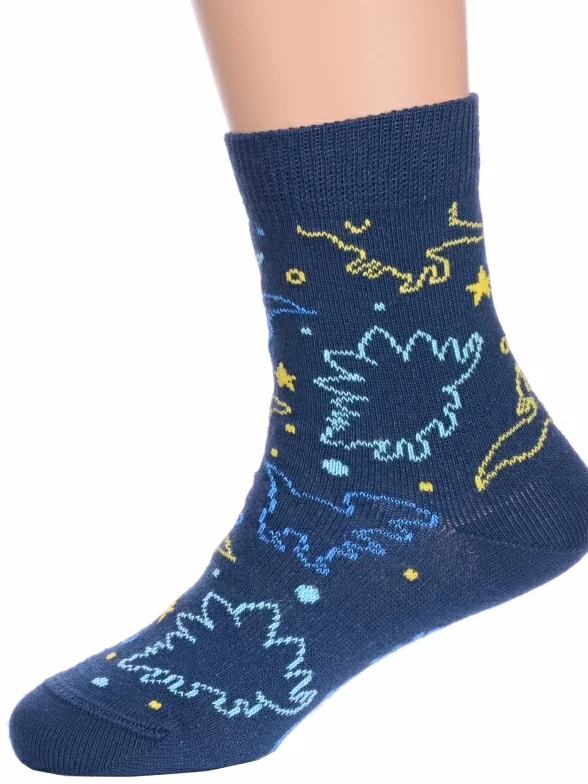 Круглогодичные укороченные детские носки, цвет темно-синий, прикольные, состав: 72% хлопок, 25.5% полиамид, 2.5% эластан, фабричный артикул 5С-11СП. Производитель «Conte, Беларусь» под брендом «Conte».