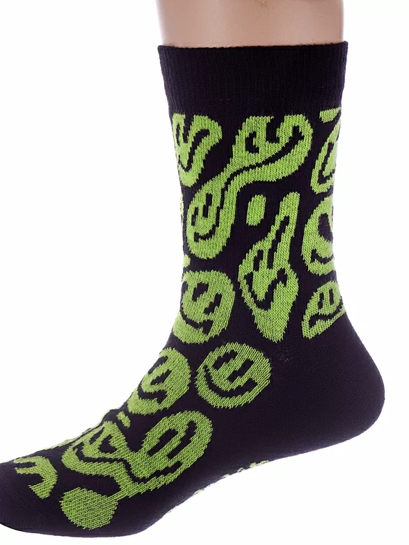 Круглогодичные укороченные детские носки, цвет черный-салатовый, прикольные, состав: 72% хлопок, 25.5% полиамид, 2.5% эластан, фабричный артикул 5С-11СП. Производитель «Conte, Беларусь» под брендом «Conte».