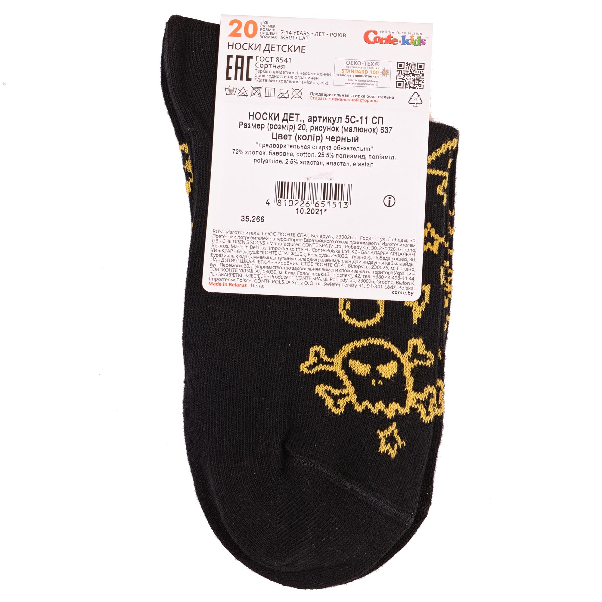 Круглогодичные укороченные детские носки, цвет черный, прикольные, состав: 72% хлопок, 25,5% полиамид, 2,5% эластан, фабричный артикул 5С-11СП. Производитель «Conte, Беларусь» под брендом «Conte».