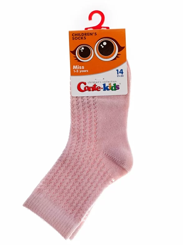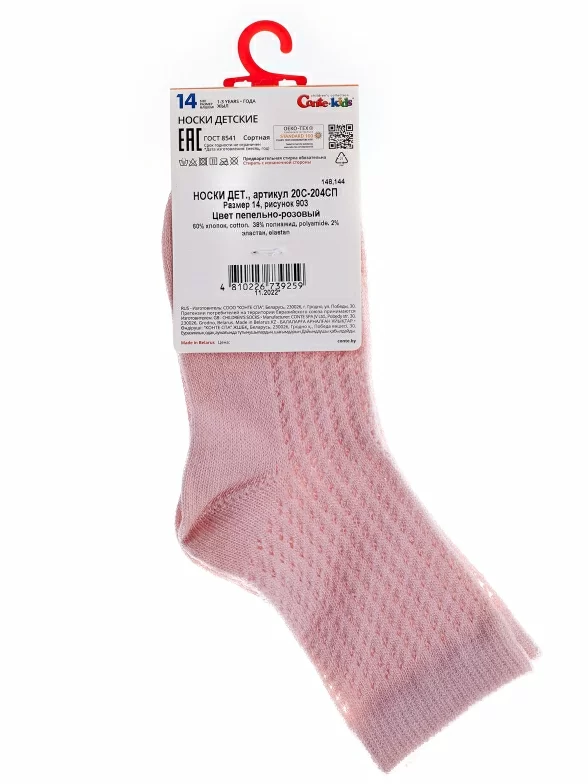 Летние укороченные детские носки, цвет розовый, в сеточку, состав: 60% хлопок, 38% полиамид, 2% эластан, фабричный артикул 20С-204СП. Производитель «Conte, Беларусь» под брендом «Conte».