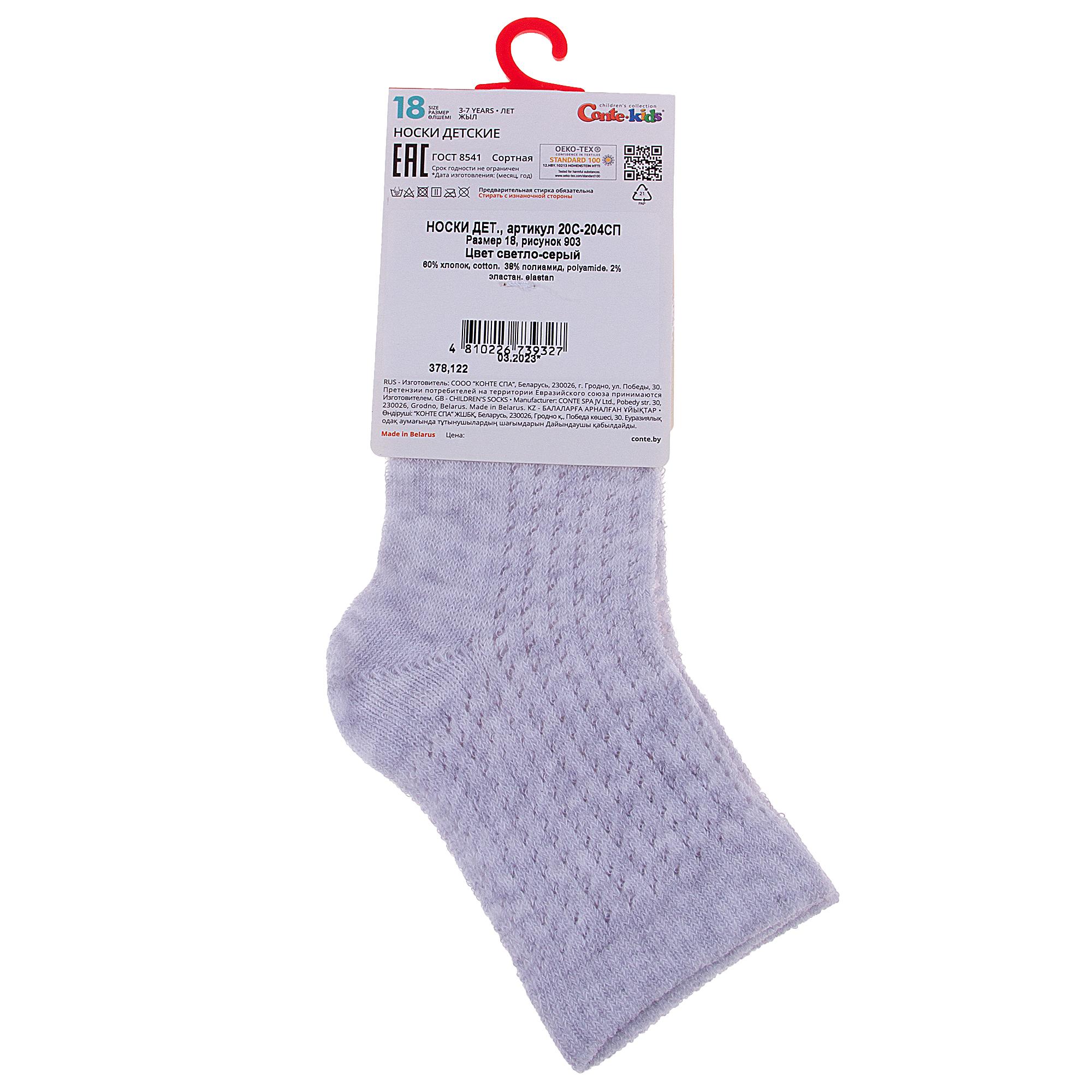 Летние укороченные детские носки, цвет светло-серый, в сеточку, состав: 60% хлопок, 38% полиамид, 2% эластан, фабричный артикул 20С-204СП. Производитель «Conte, Беларусь» под брендом «Conte».