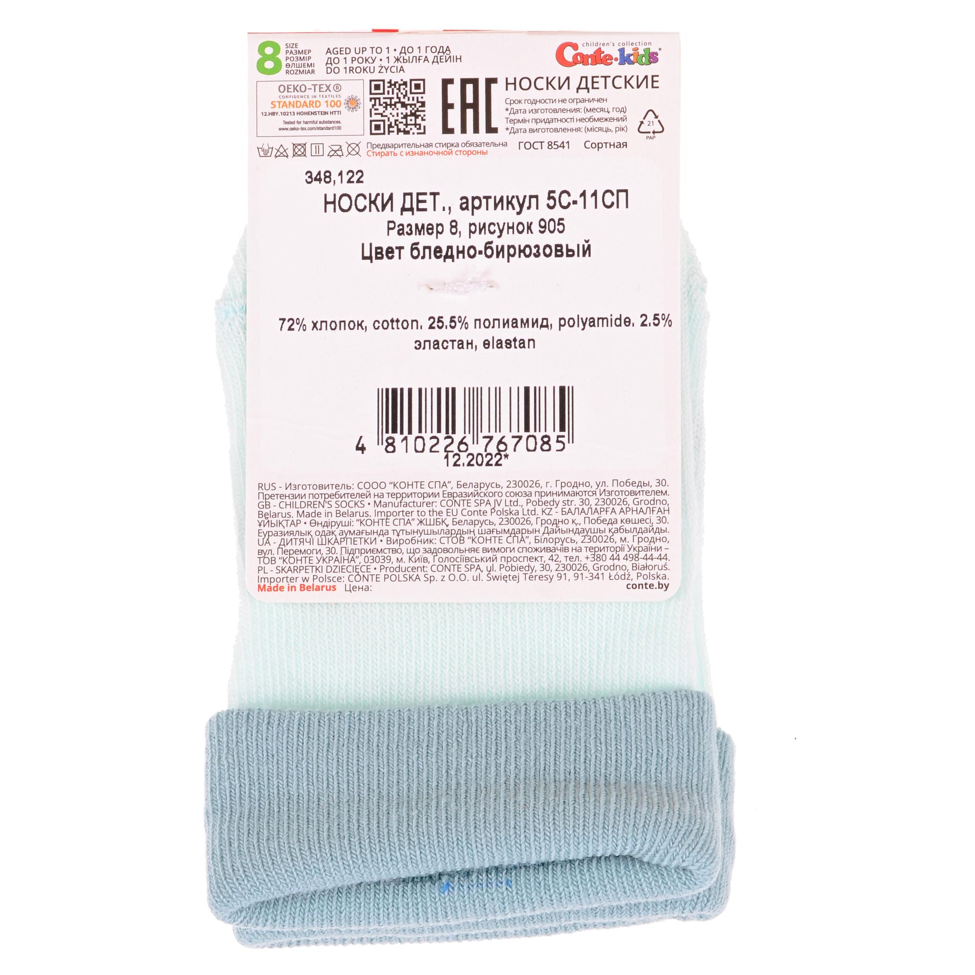 Круглогодичные укороченные детские носки, цвет бирюзовый, прикольные, состав: 72% хлопок, 25.5% полиамид, 2.5% эластан, фабричный артикул 5С-11СП. Производитель «Conte, Беларусь» под брендом «Conte».