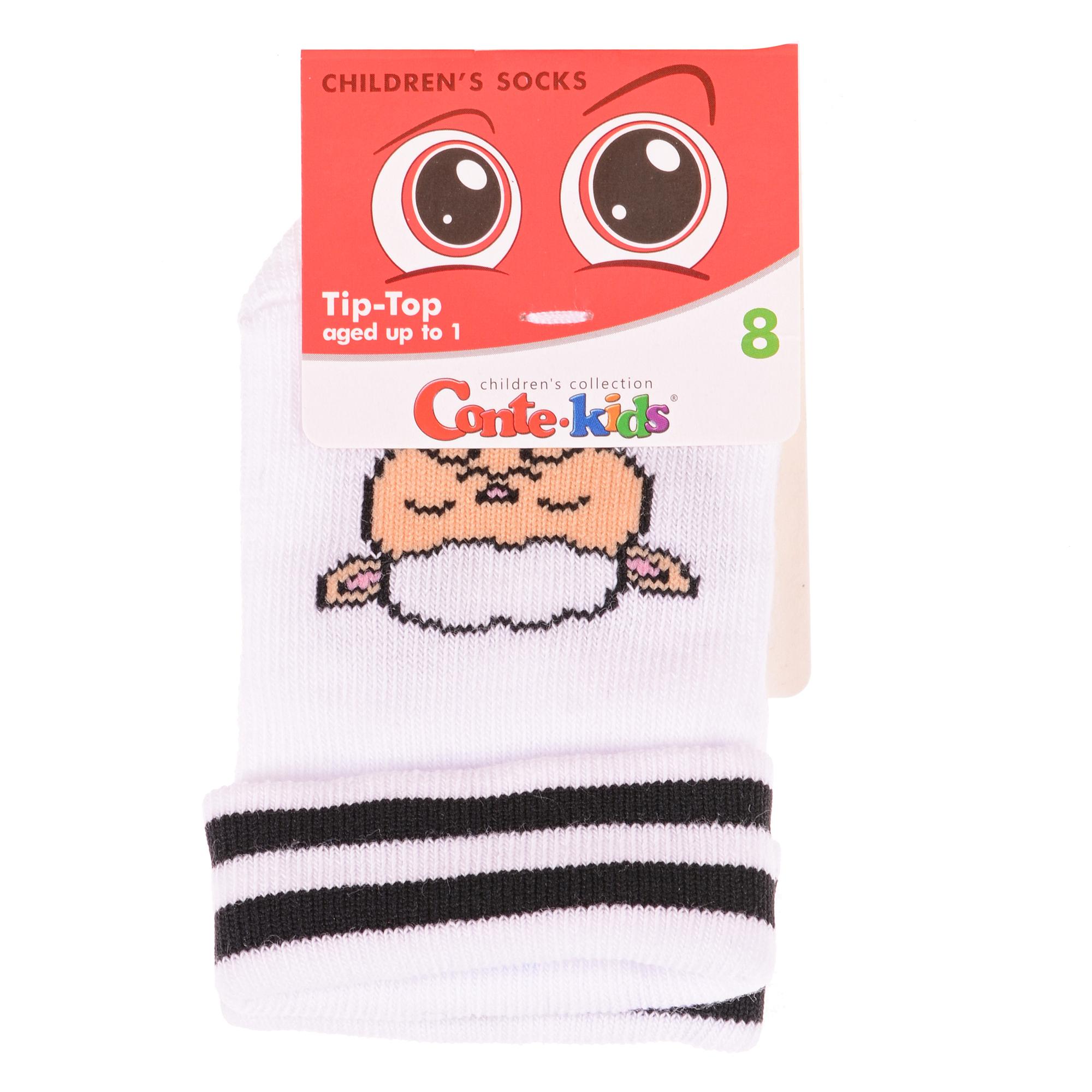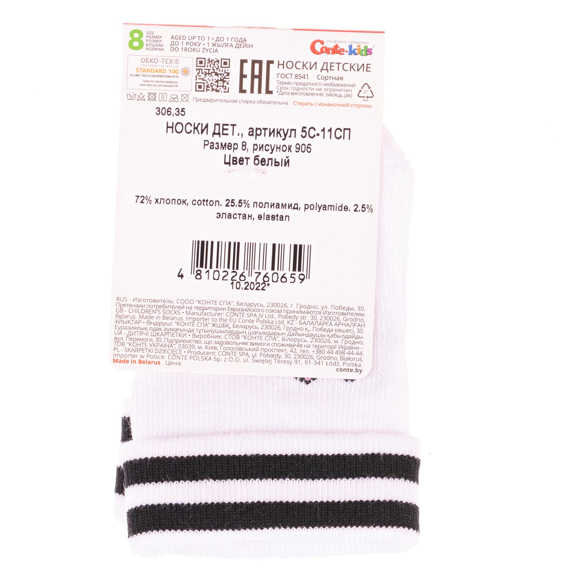Круглогодичные укороченные детские носки, цвет белый, прикольные, состав: 72% хлопок, 25.5% полиамид, 2.5% эластан, фабричный артикул 5С-11СП. Производитель «Conte, Беларусь» под брендом «Conte».