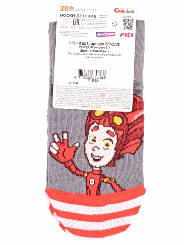 Детские носки ФИКСИКИ Conte kids, 22С-23СП, рис. 914, ТЕМНО-СЕРЫЕ