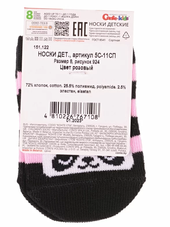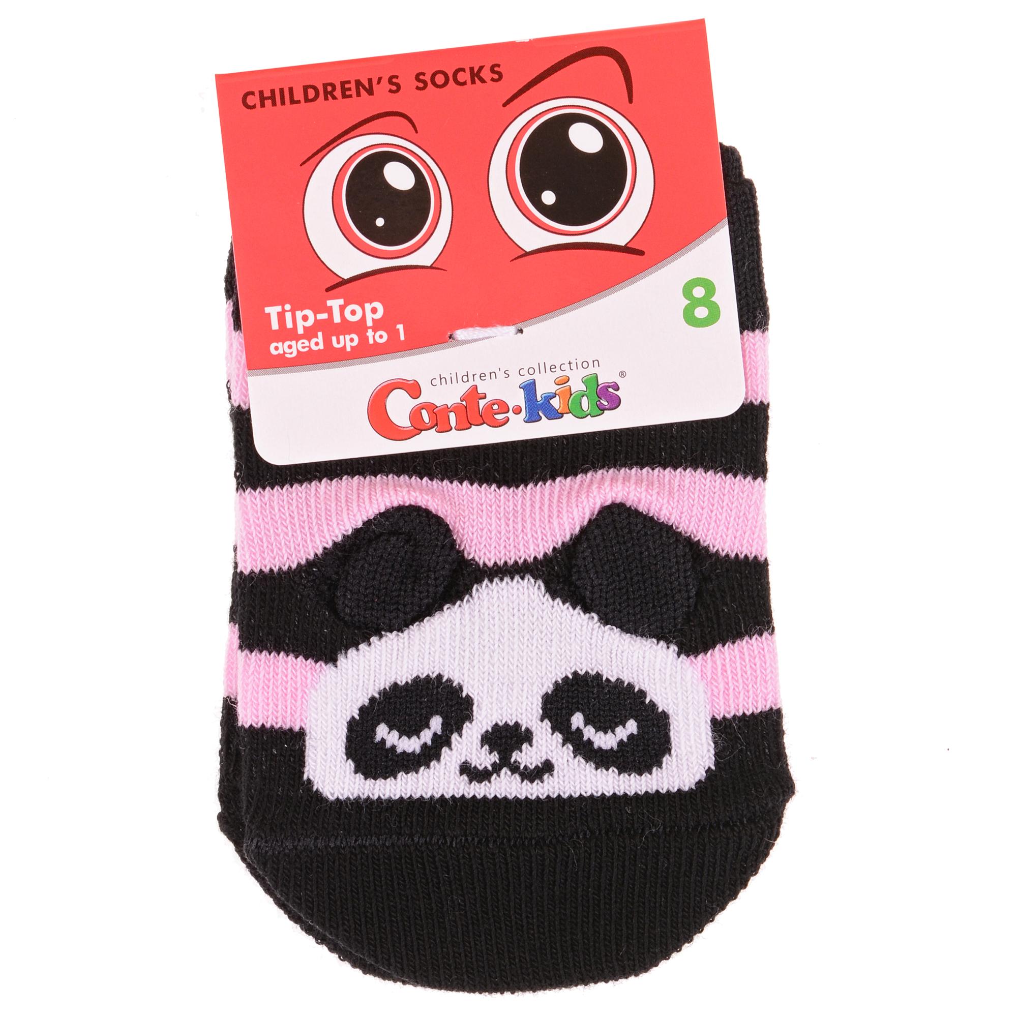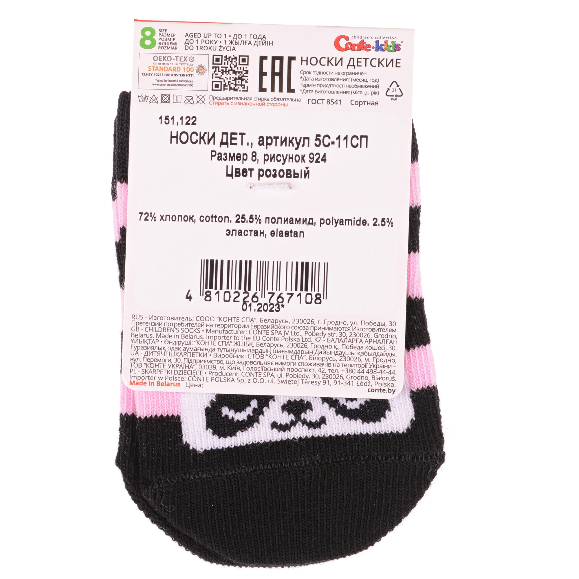 Круглогодичные укороченные детские носки, цвет черный-розовый, прикольные, состав: 72% хлопок, 25.5% полиамид, 2.5% эластан, фабричный артикул 5С-11СП. Производитель «Conte, Беларусь» под брендом «Conte».