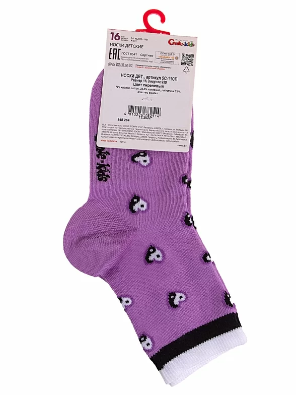 Круглогодичные укороченные детские носки, цвет сиреневый, прикольные, состав: 72% хлопок, 25.5% полиамид, 2.5% эластан, фабричный артикул 5С-11СП. Производитель «Conte, Беларусь» под брендом «Conte».