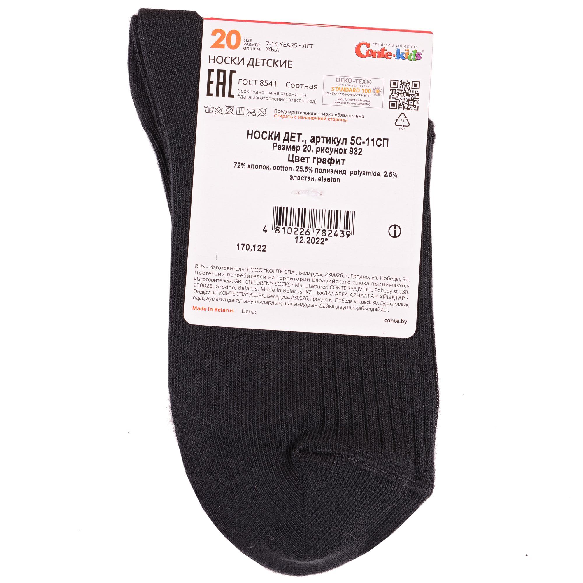 Круглогодичные укороченные детские носки, цвет темно-серый, классические, состав: 72% хлопок, 25,5% полиамид, 2,5% эластан, фабричный артикул 5С-11СП. Производитель «Conte, Беларусь» под брендом «Conte».