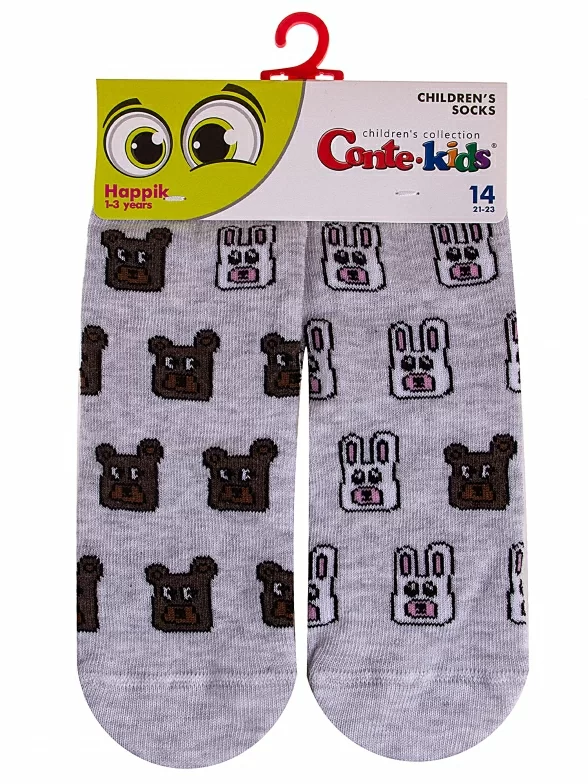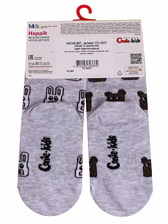 Круглогодичные укороченные детские носки, цвет светло-серый, прикольные, состав: 72% хлопок, 25.5% полиамид, 2.5% эластан, фабричный артикул 17С-10СП. Производитель «Conte, Беларусь» под брендом «Conte».