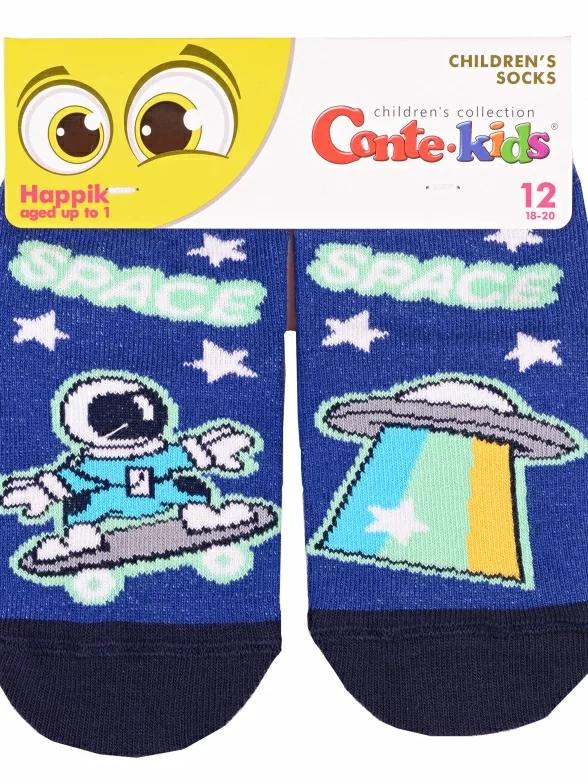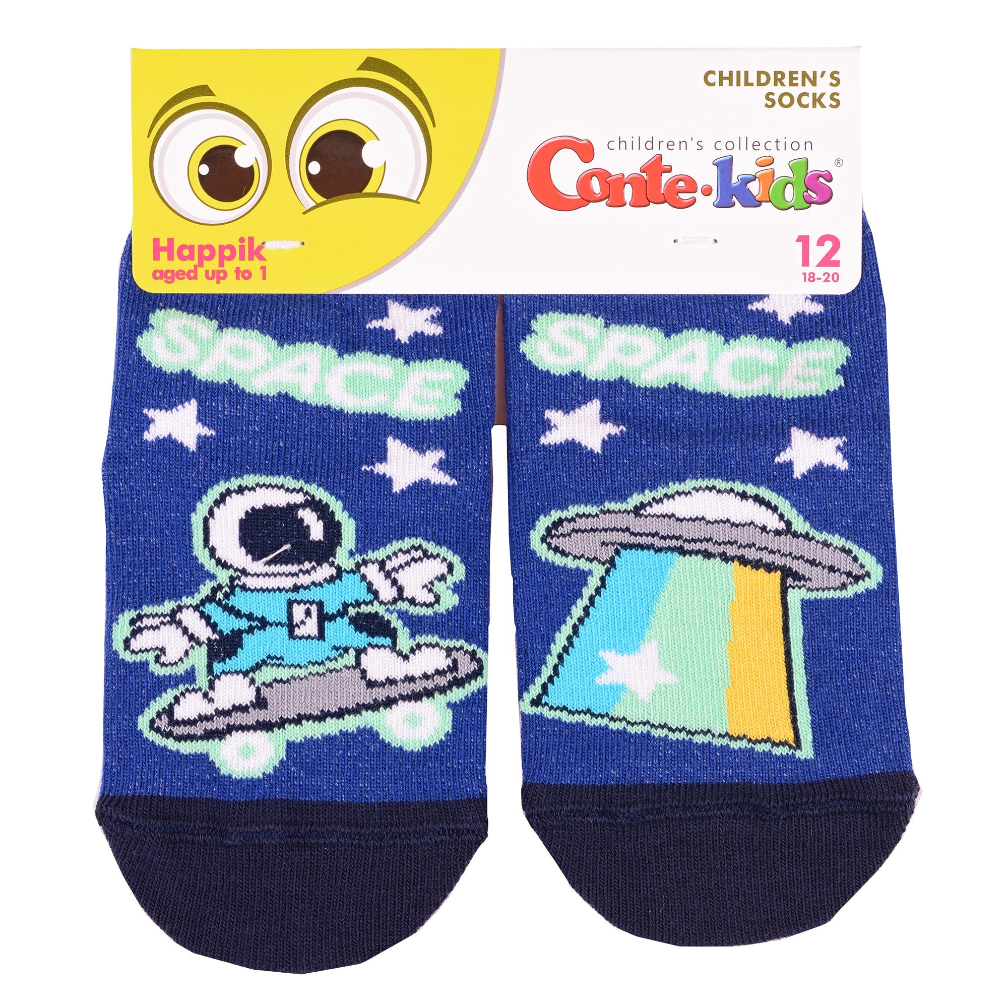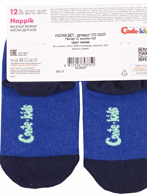 Круглогодичные укороченные детские носки, цвет синий, прикольные, состав: 72% хлопок, 25.5% полиамид, 2.5% эластан, фабричный артикул 17С-10СП. Производитель «Conte, Беларусь» под брендом «Conte».