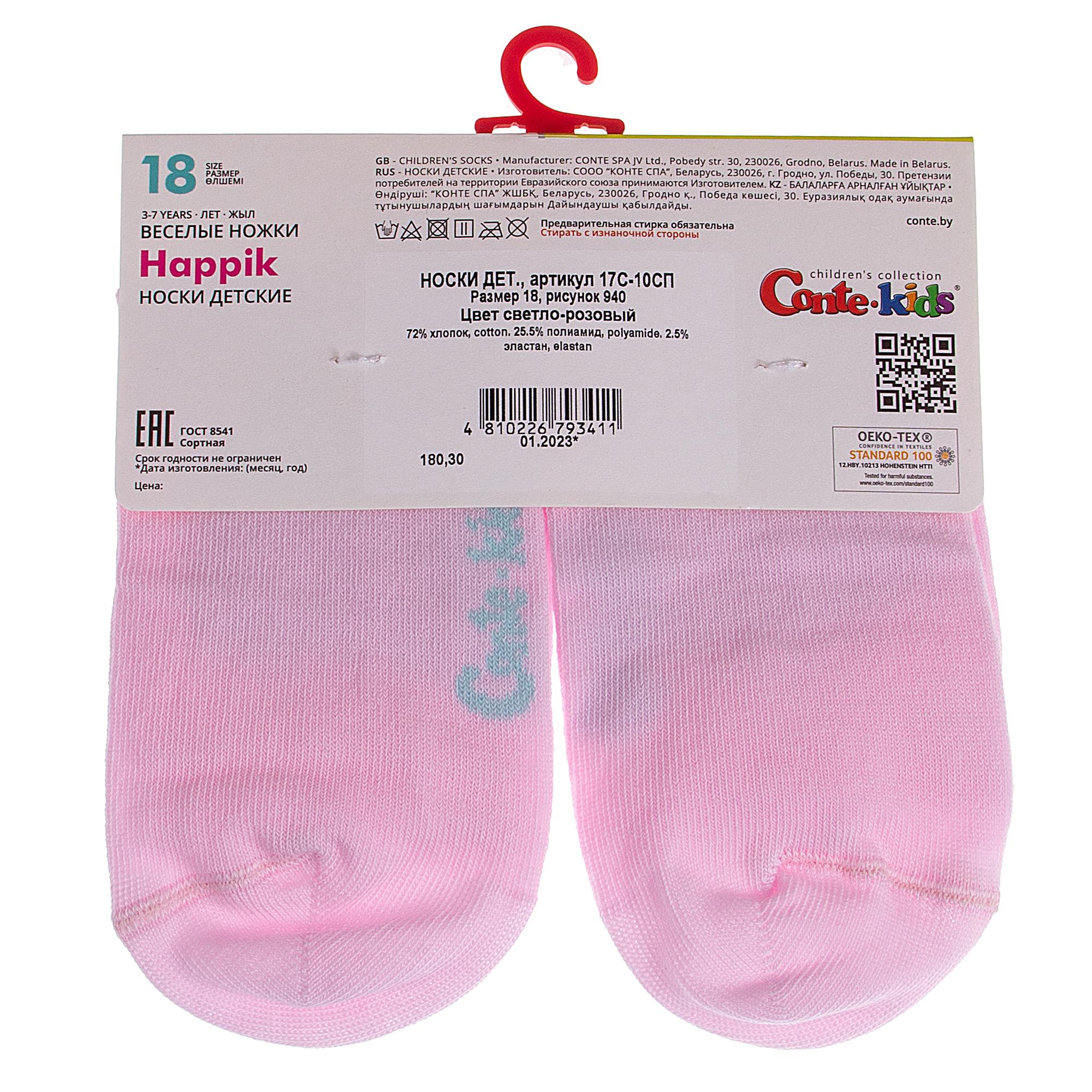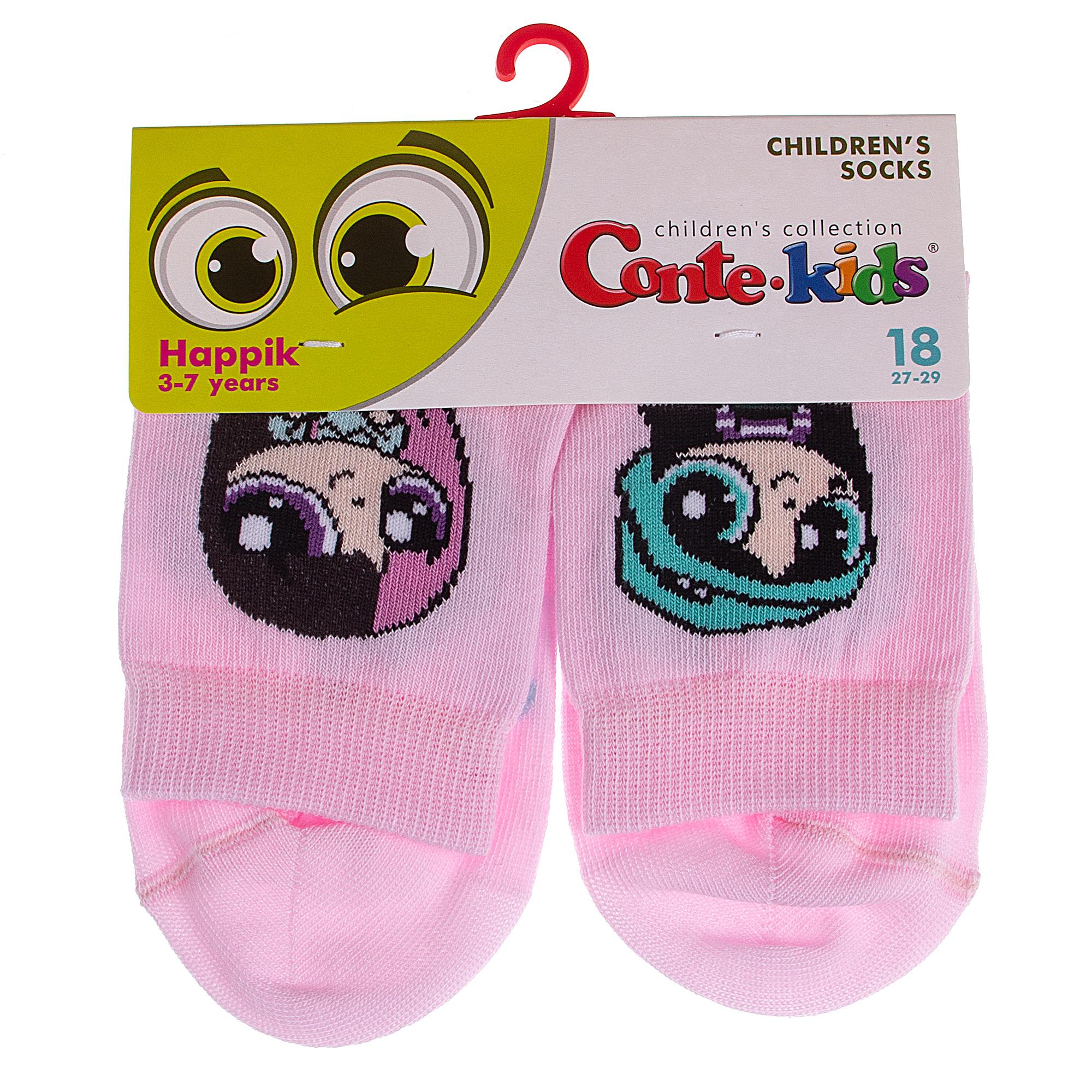 Круглогодичные укороченные детские носки, цвет розовый, прикольные, состав: 72% хлопок, 25.5% полиамид, 2.5% эластан, фабричный артикул 17С-10СП. Производитель «Conte, Беларусь» под брендом «Conte».