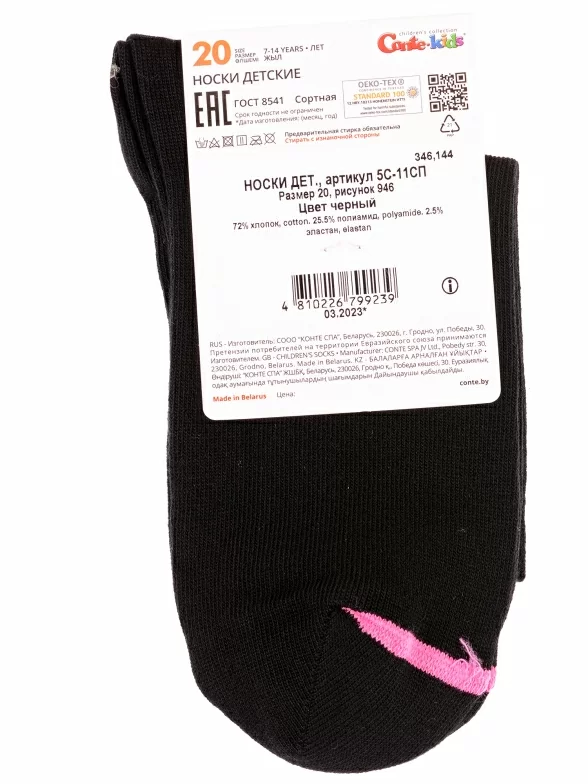 Круглогодичные укороченные детские носки, цвет черный, прикольные, состав: 72% хлопок, 25,5% полиамид, 2,5% эластан, фабричный артикул 5С-11СП. Производитель «Conte, Беларусь» под брендом «Conte».