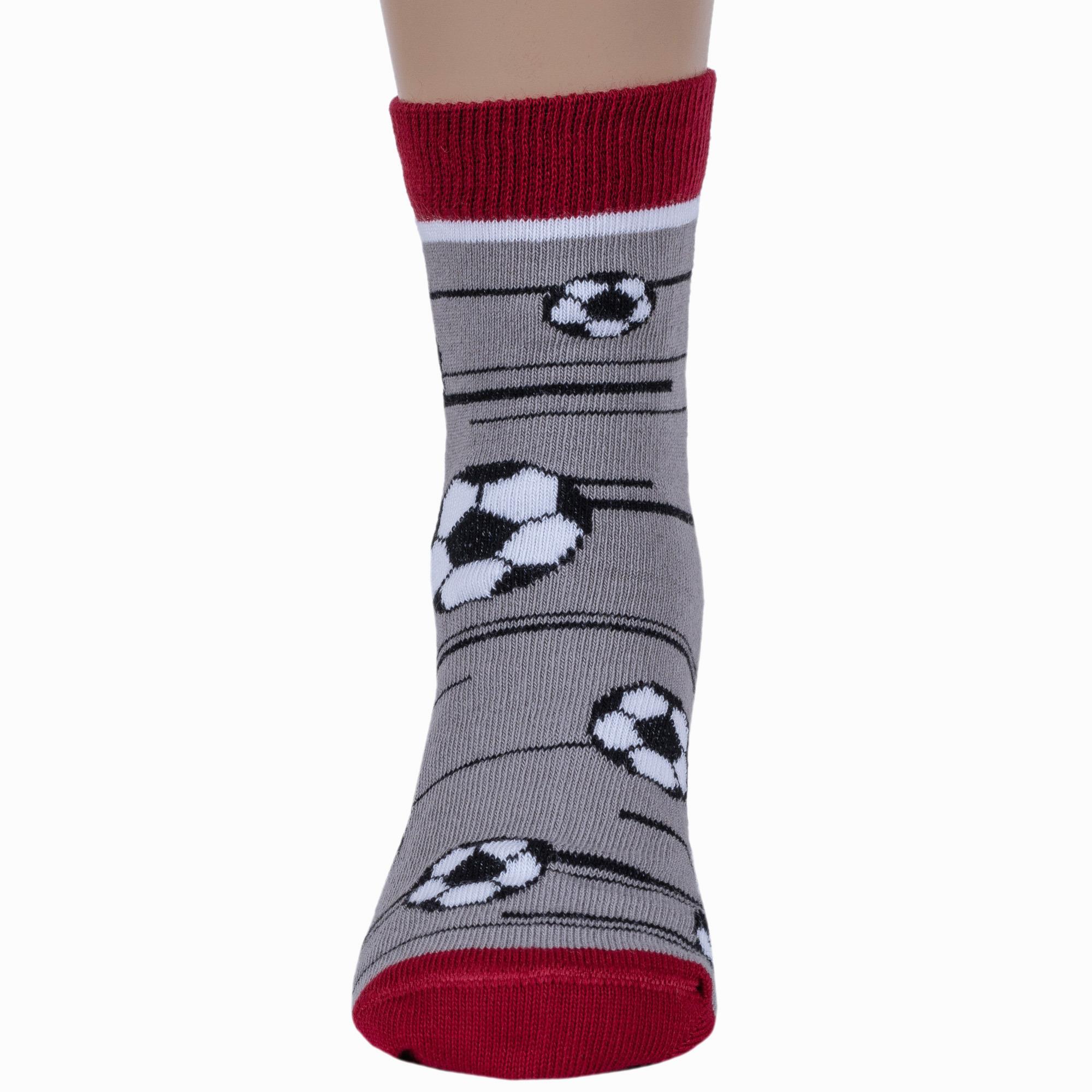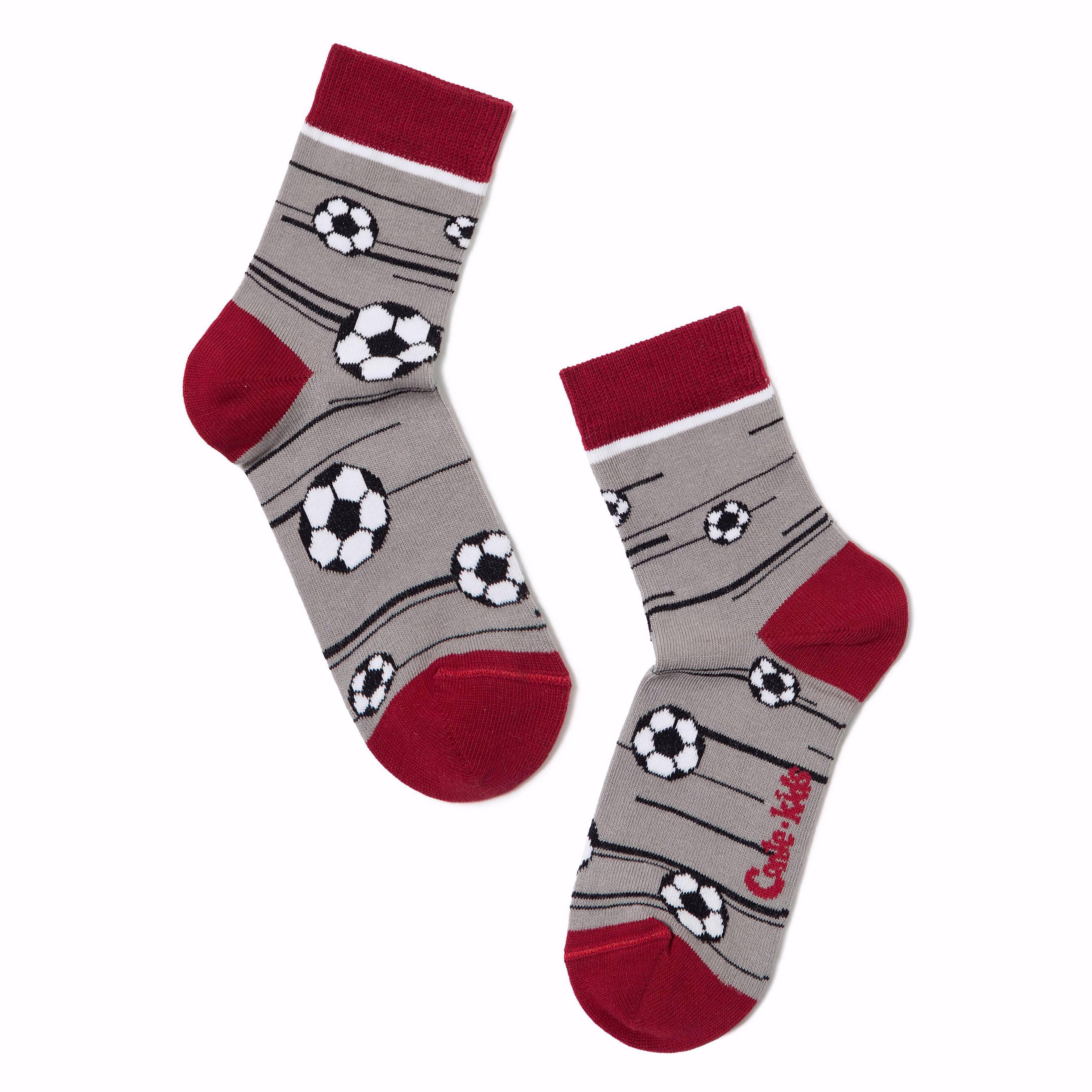 Круглогодичные средней длины детские носки, цвет серый, повседневные, шов кеттельный (бесшовная технология), принт (рисунок): спортивные, игры, с узором, крупные контрастные рисунки, состав: 72% хлопок, 25.5% полиамид, 2.5% эластан, арт. 5С-11СП. Производитель «Conte, Беларусь» под брендом «Conte».