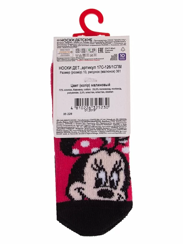 Детские носки DISNEY Conte kids, 17С-126/1СПМ, рис. 361 МАЛИНОВЫЕ