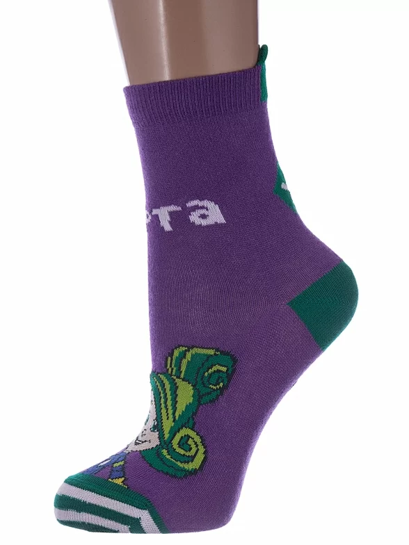 Круглогодичные укороченные детские носки, цвет фиолетовый, прикольные, состав: 60% хлопок, 38% полиамид, 2% эластан, фабричный артикул 22С-23СП. Производитель «Conte, Беларусь» под брендом «Conte».