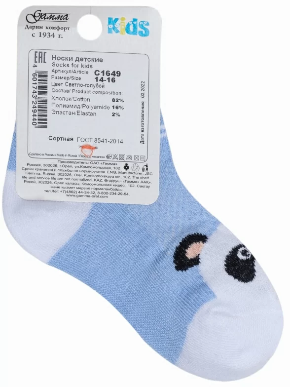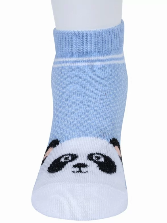 Летние короткие детские носки, цвет голубой, в сеточку, повседневные, шов обычный (не бесшовные), принт (рисунок): животные, с узором, состав: 82% хлопок, 16% полиамид, 2% эластан, арт. С1649. Производитель «ГАММА» Россия под брендом «Гамма».