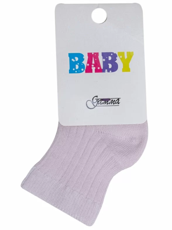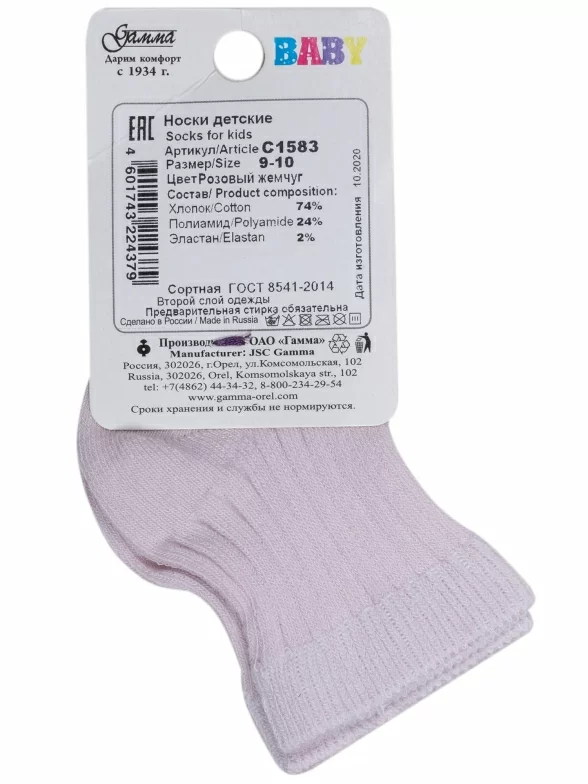 Круглогодичные укороченные детские носки, цвет розовый, классические, шов обычный (не бесшовные), принт (рисунок): в рубчик, однотонный, состав: 74% хлопок, 24% полиамид, 2% эластан, арт. С1583. Производитель «ГАММА» Россия под брендом «Гамма».