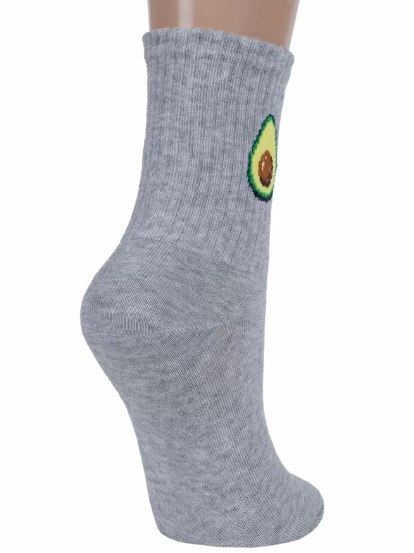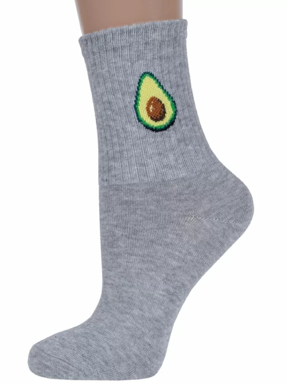 Круглогодичные средней длины детские носки, цвет светло-серый, повседневные, шов обычный (не бесшовные), принт (рисунок): овощи / фрукты / ягоды, еда и напитки, в рубчик, с узором, состав: 63% хлопок, 27% полиамид, 7% эластан, 3% полипропилен, арт. С1614. Производитель «ГАММА» Россия под брендом «Гамма».