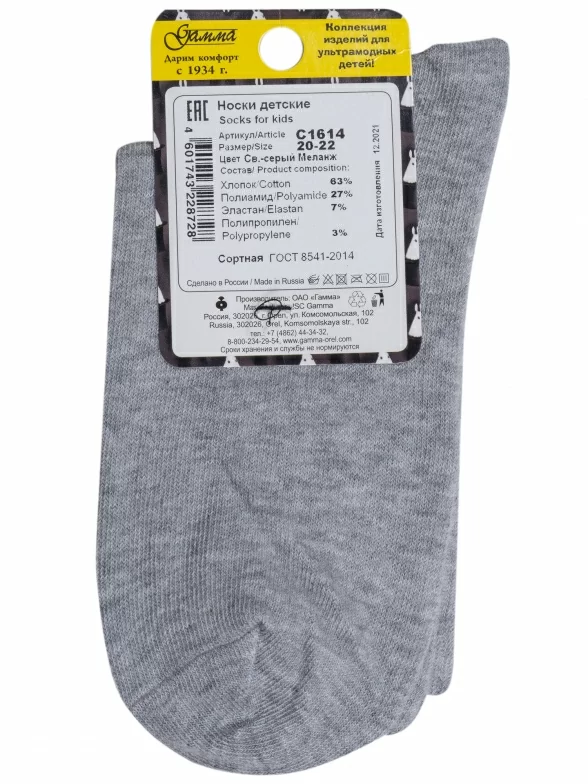 Детские носки "Гамма", С1614, СВЕТЛО-СЕРЫЕ МЕЛАНЖ