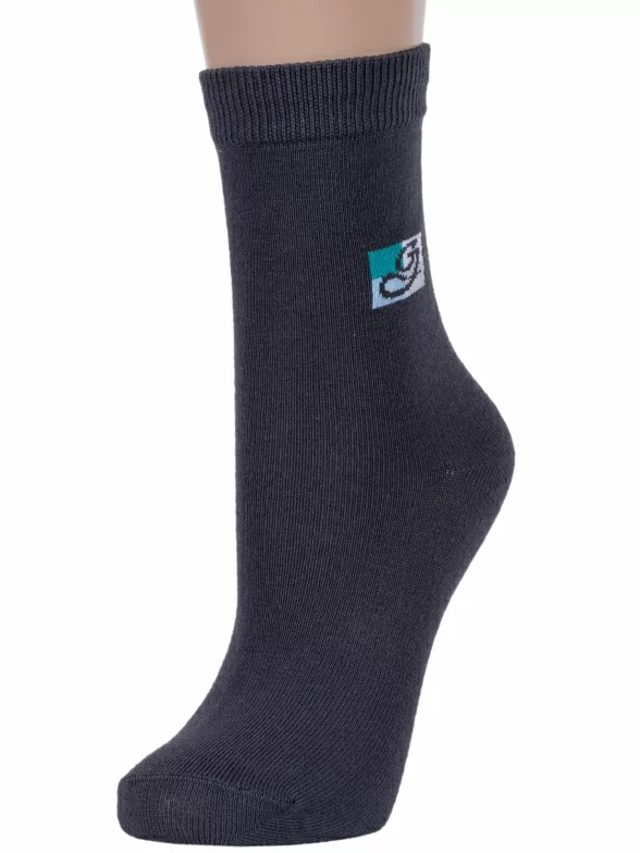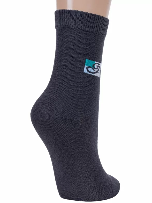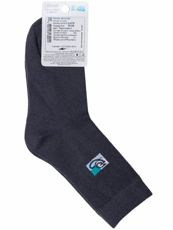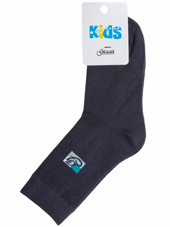 Круглогодичные средней длины детские носки, цвет темно-серый, классические, шов обычный (не бесшовные), принт (рисунок): однотонный, небольшой рисунок, состав: 72% хлопок, 26% полиамид, 2% эластан, арт. С475. Производитель «ГАММА» Россия под брендом «Гамма».
