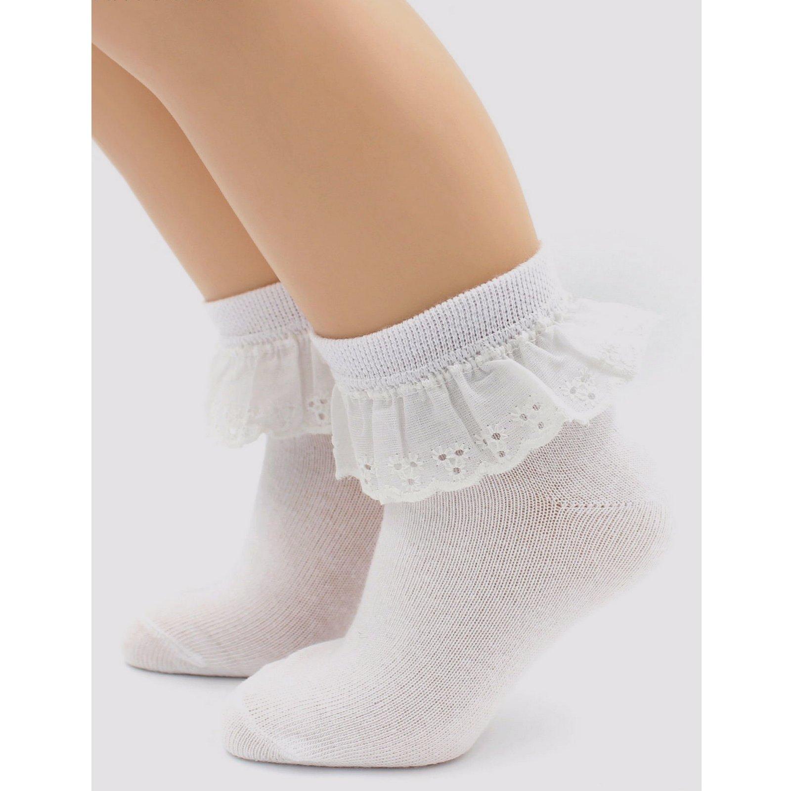 Круглогодичные укороченные детские носки, цвет белый, повседневные, с отворотом, шов обычный (не бесшовные), принт (рисунок): кружево (или имитация), однотонный, состав: 75% хлопок, 23% полиамид, 2% эластан, арт. 857. Производитель «Китай, страна бренда - Россия» под брендом «Hobby line».