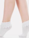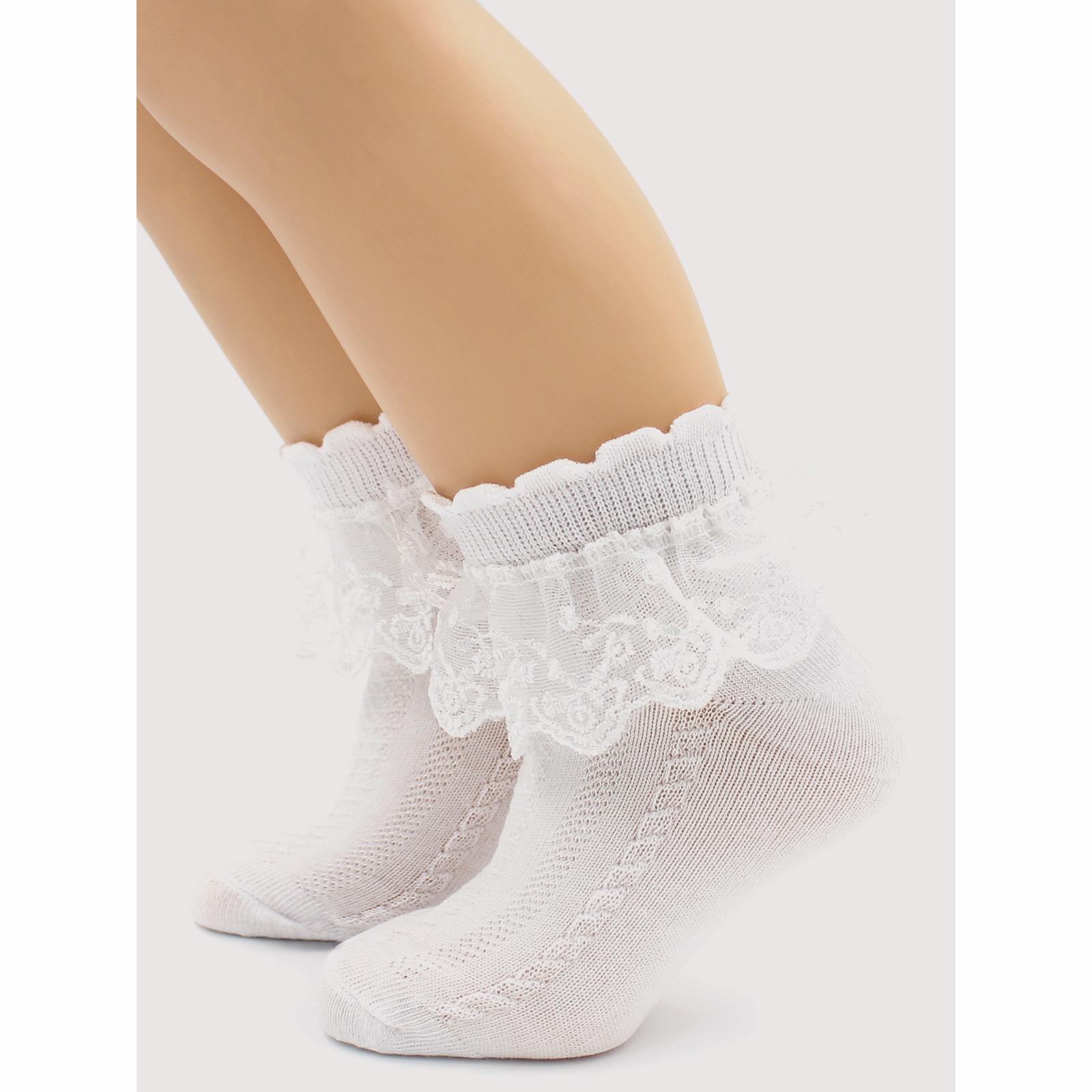 Круглогодичные короткие детские носки, цвет белый, с отворотом, повседневные, шов обычный (не бесшовные), принт (рисунок): однотонный, с узором, кружево (или имитация), орнамент, состав: 75% хлопок, 23% полиамид, 2% эластан, арт. 858. Производитель «Китай, страна бренда - Россия» под брендом «Hobby line».