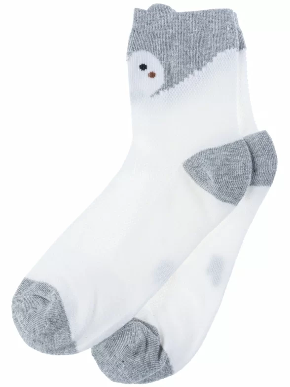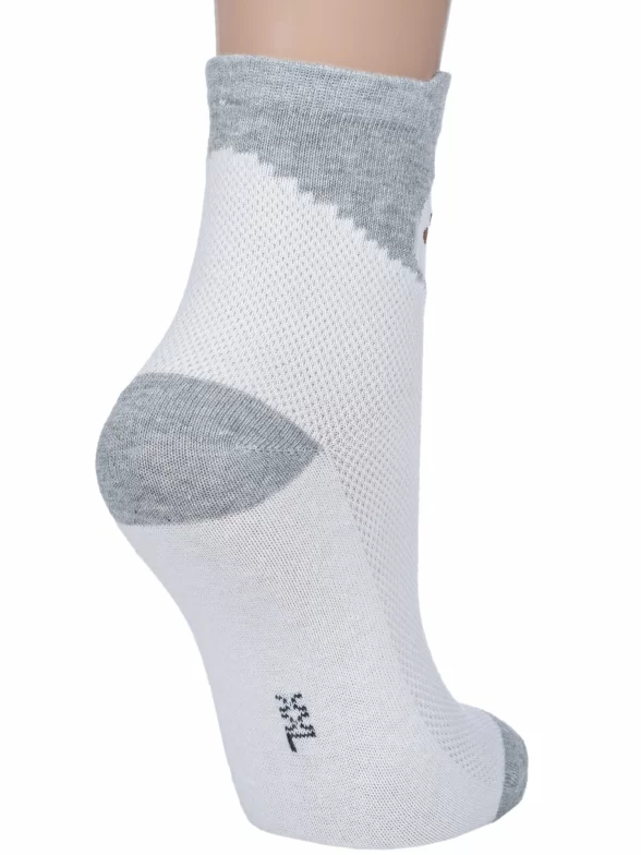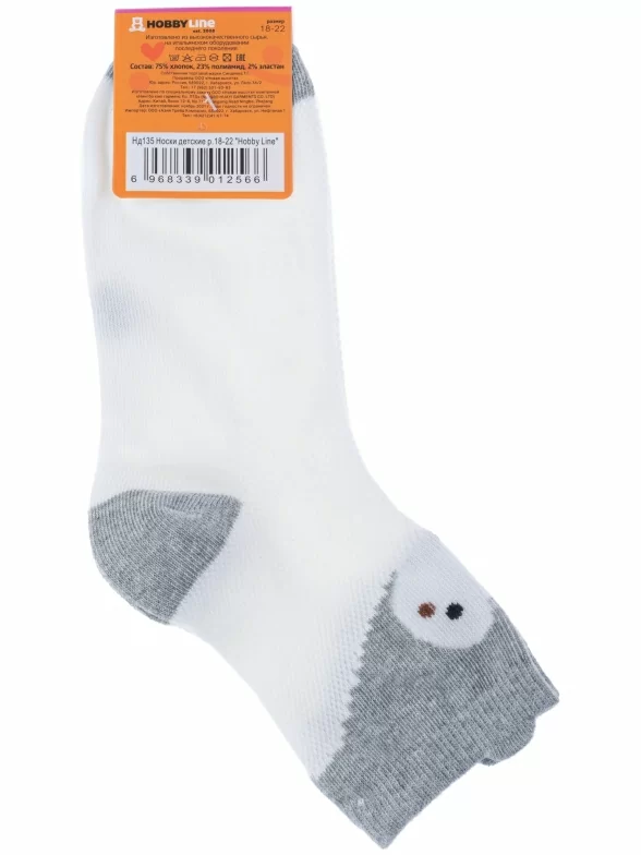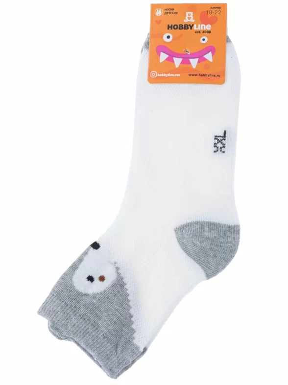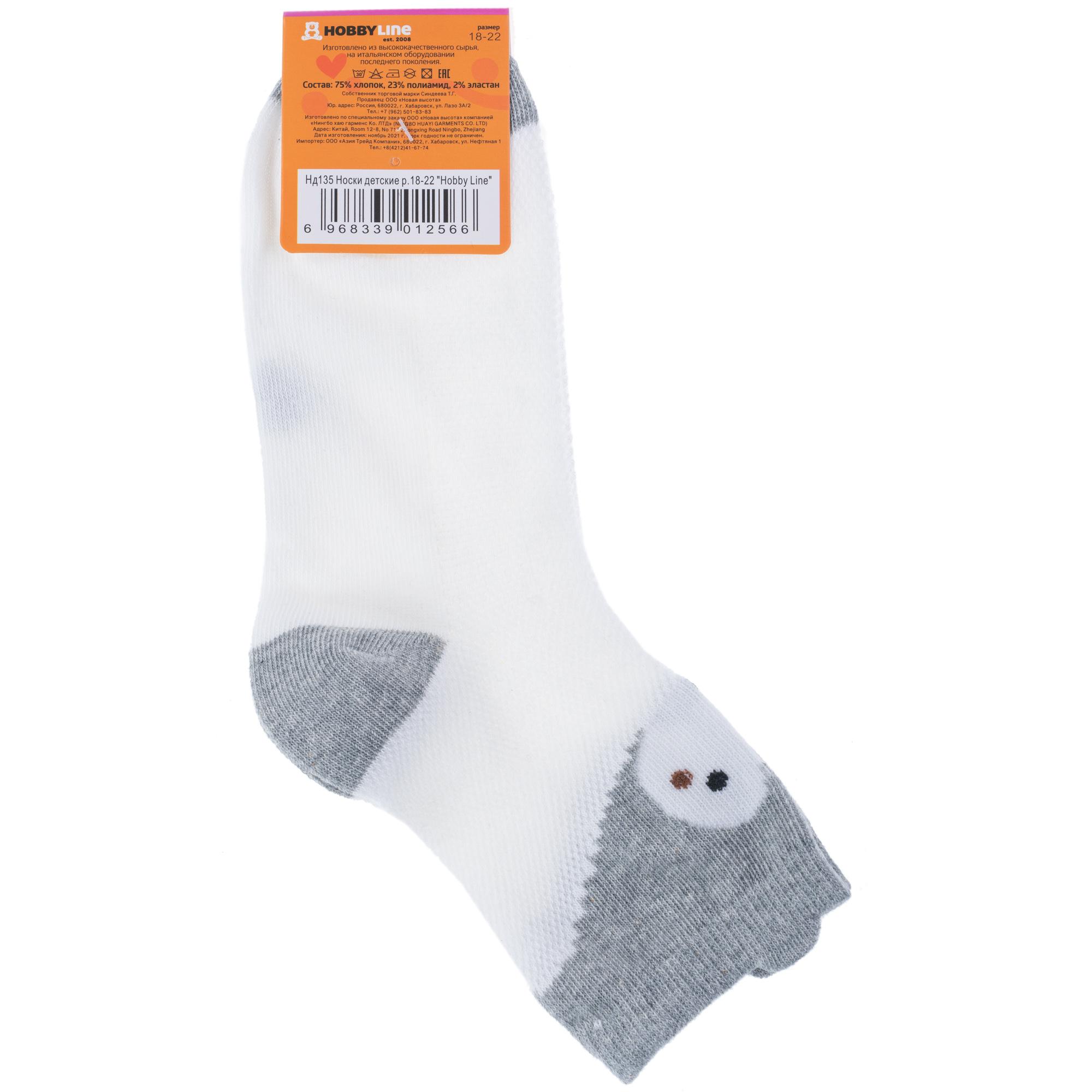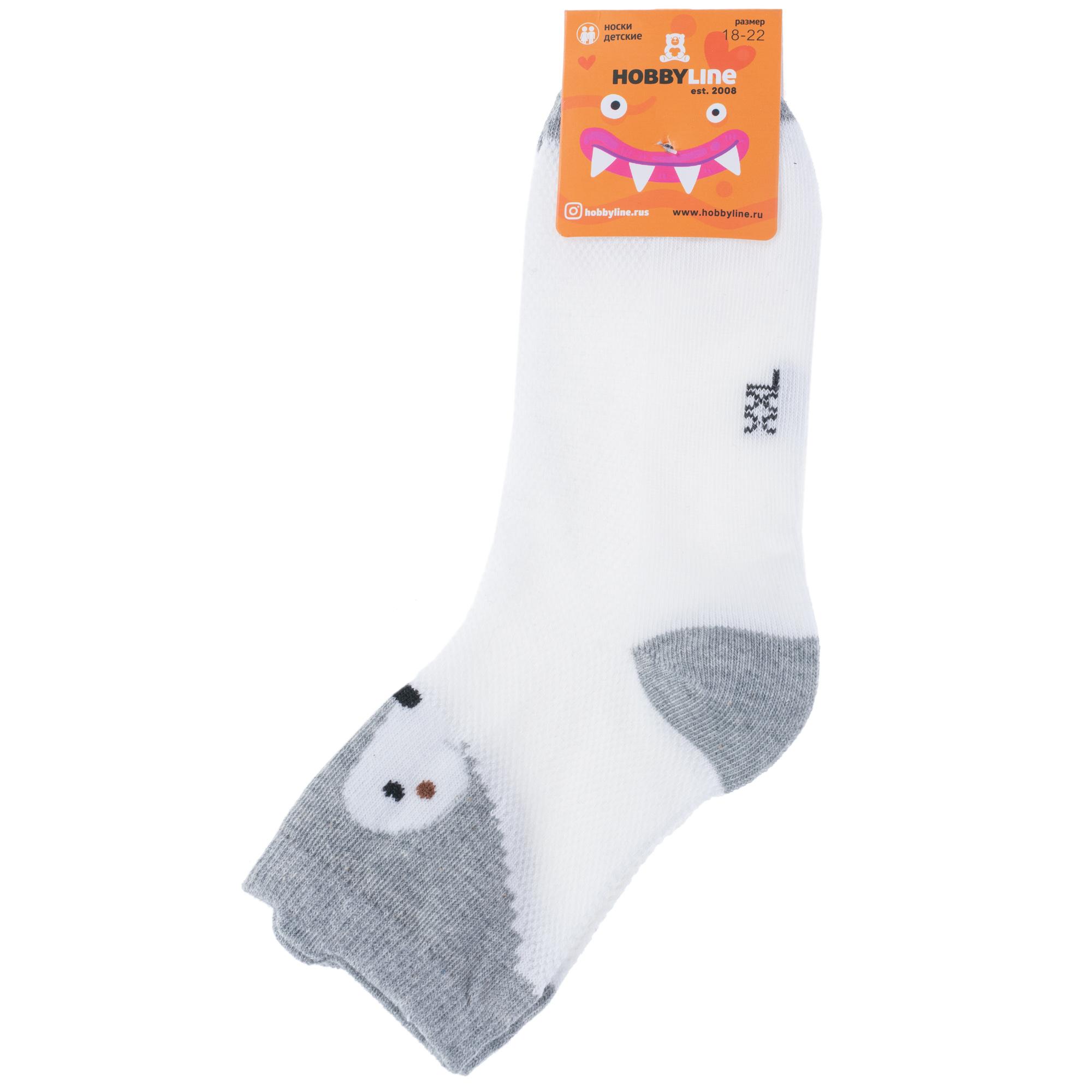 Летние укороченные детские носки, цвет белый, в сеточку, повседневные, шов обычный (не бесшовные), принт (рисунок): животные, с узором, состав: 75% хлопок, 23% полиамид, 2% эластан, арт. 135. Производитель «Китай, страна бренда - Россия» под брендом «Hobby line».