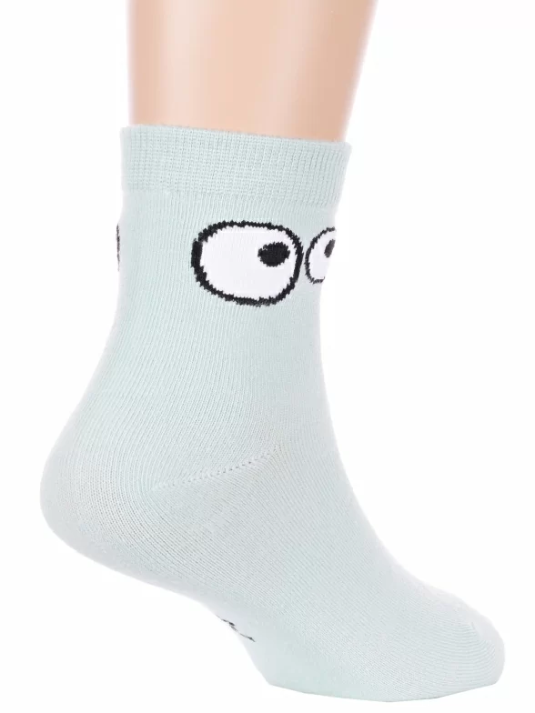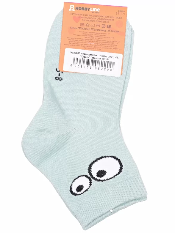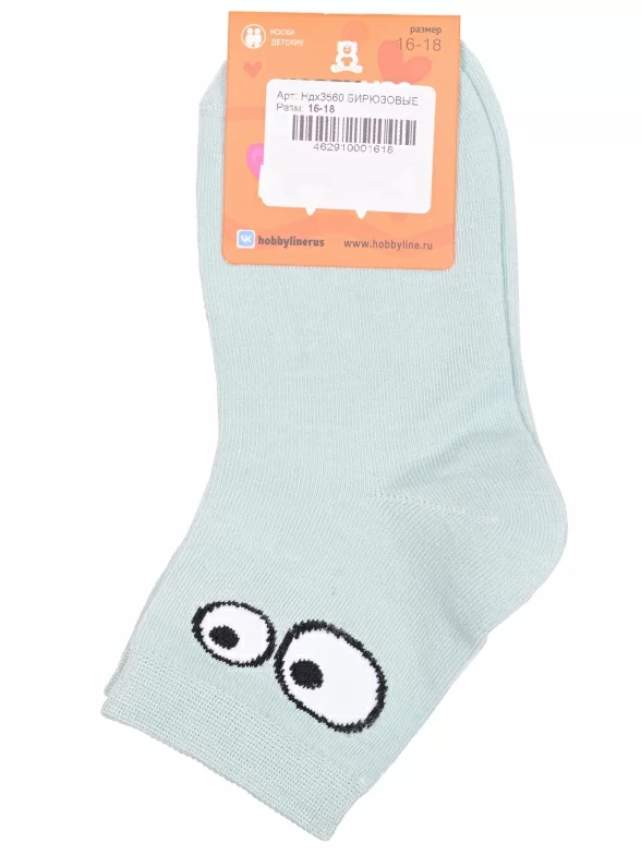Круглогодичные укороченные детские носки, цвет бирюзовый, повседневные, шов обычный (не бесшовные), принт (рисунок): с узором, состав: 75% хлопок, 23% полиамид, 2% эластан, арт. Ндх3560. Производитель «Китай, страна бренда - Россия» под брендом «Hobby line».