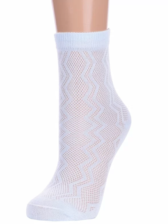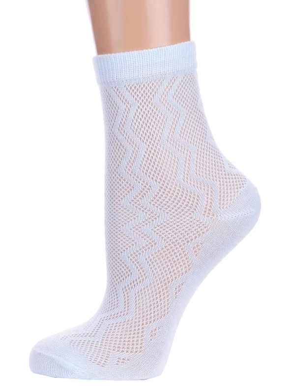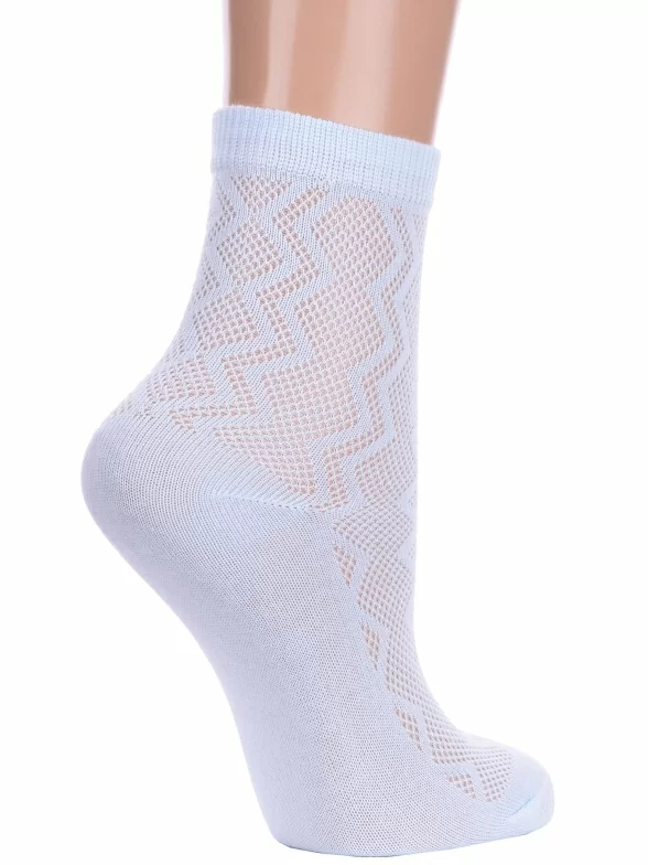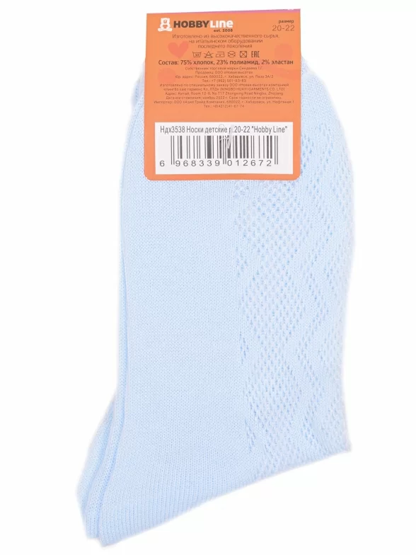 Летние укороченные детские носки, цвет голубой, в сеточку, ажурные, шов обычный (не бесшовные), принт (рисунок): зигзаг / молния, с узором, однотонный, состав: 75% хлопок, 23% полиамид, 2% эластан, арт. Ндх3538. Производитель «Китай, страна бренда - Россия» под брендом «Hobby line».