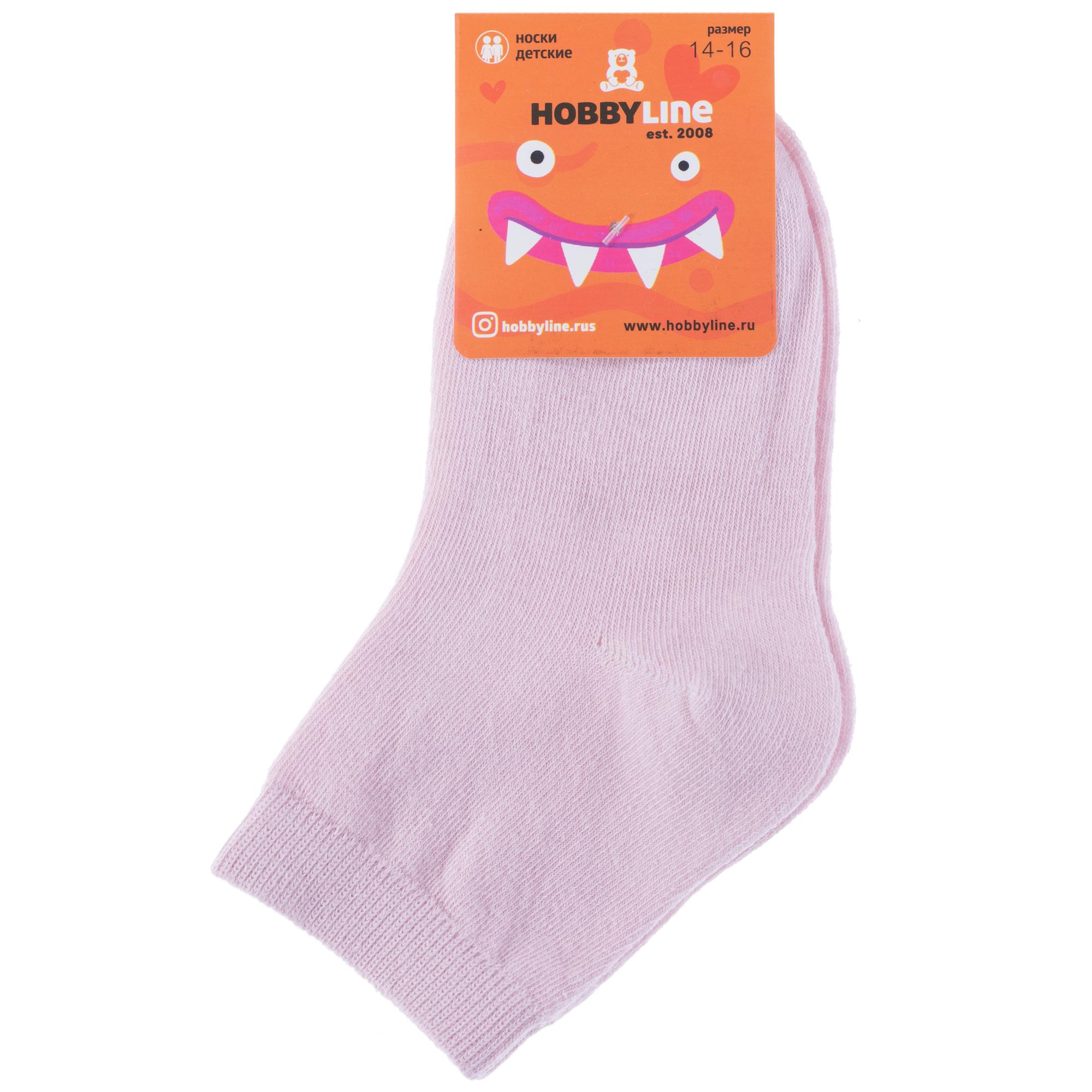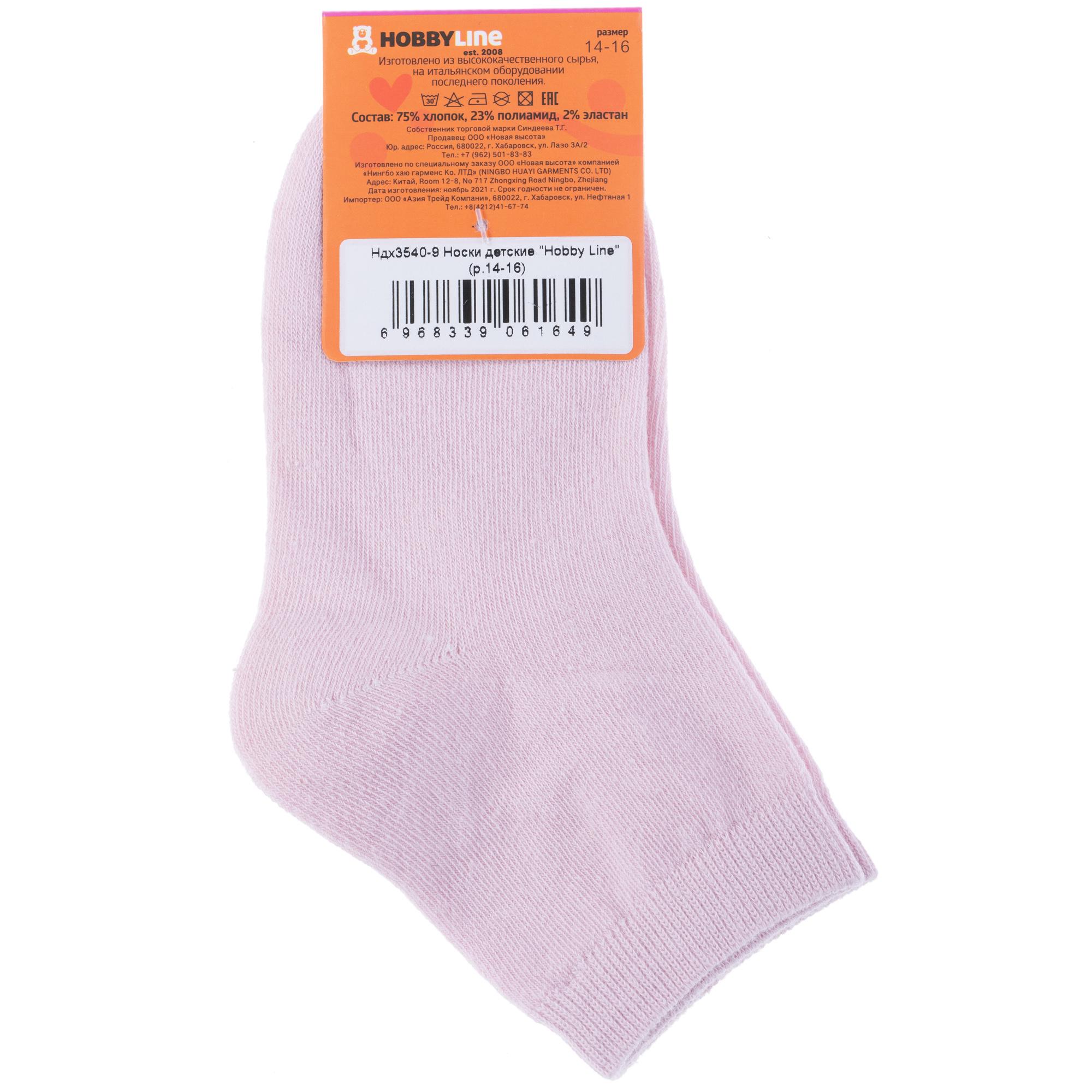 Круглогодичные укороченные детские носки, цвет розовый, классические, шов обычный (не бесшовные), принт (рисунок): однотонный, без рисунков/узоров, состав: 75% хлопок, 23% полиамид, 2% эластан, арт. 3540-9. Производитель «Китай, страна бренда - Россия» под брендом «Hobby line».