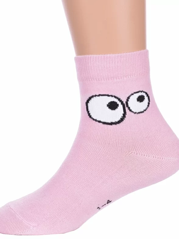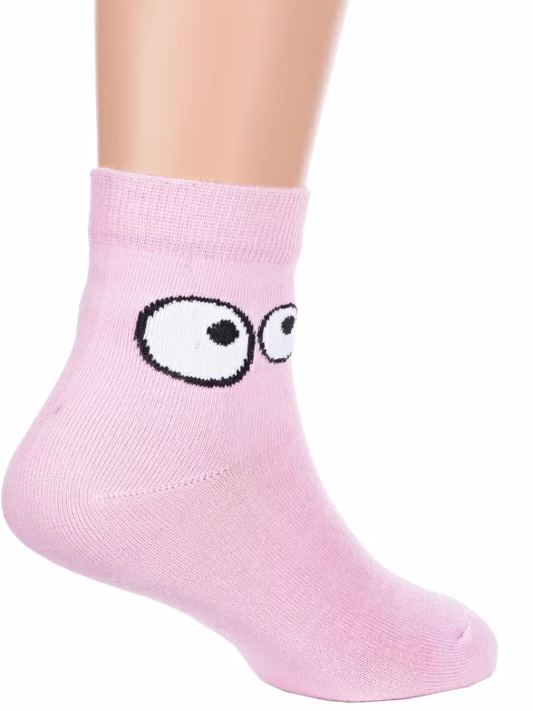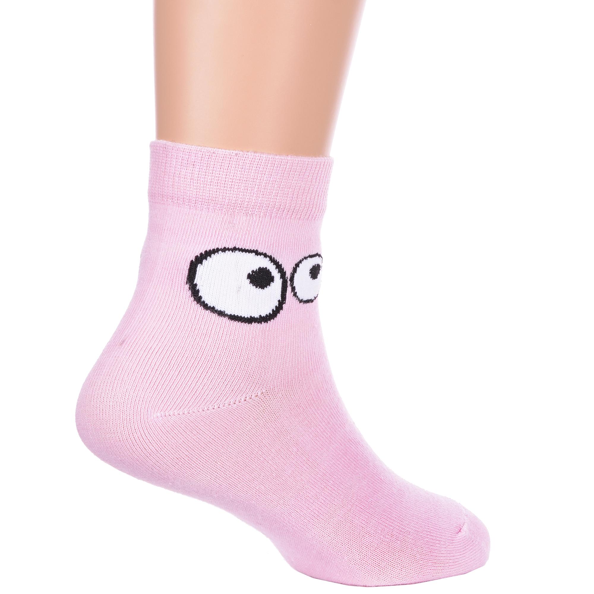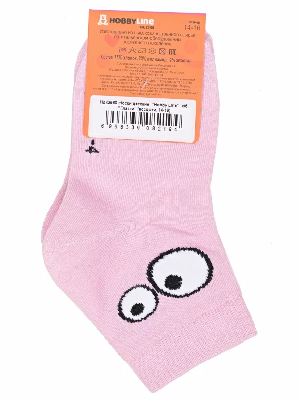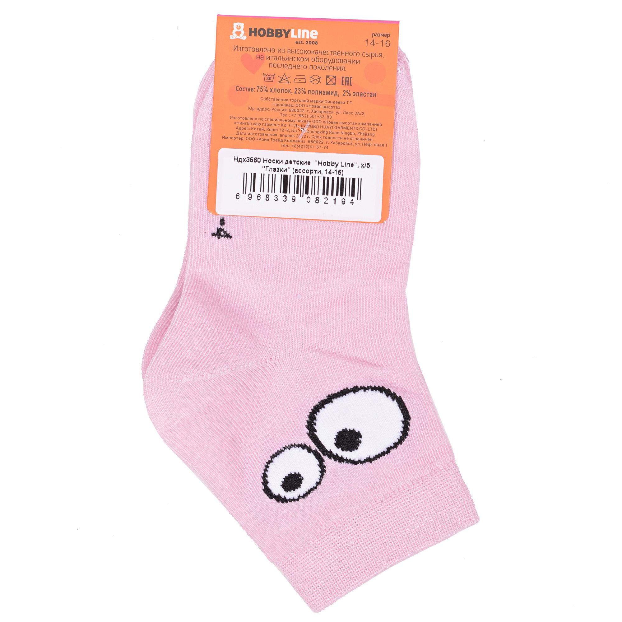 Круглогодичные укороченные детские носки, цвет розовый, повседневные, шов обычный (не бесшовные), принт (рисунок): с узором, состав: 75% хлопок, 23% полиамид, 2% эластан, арт. Ндх3560. Производитель «Китай, страна бренда - Россия» под брендом «Hobby line».