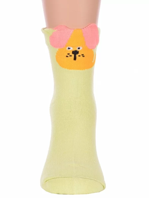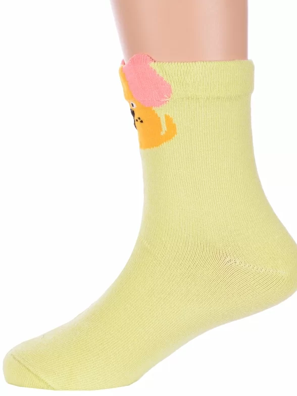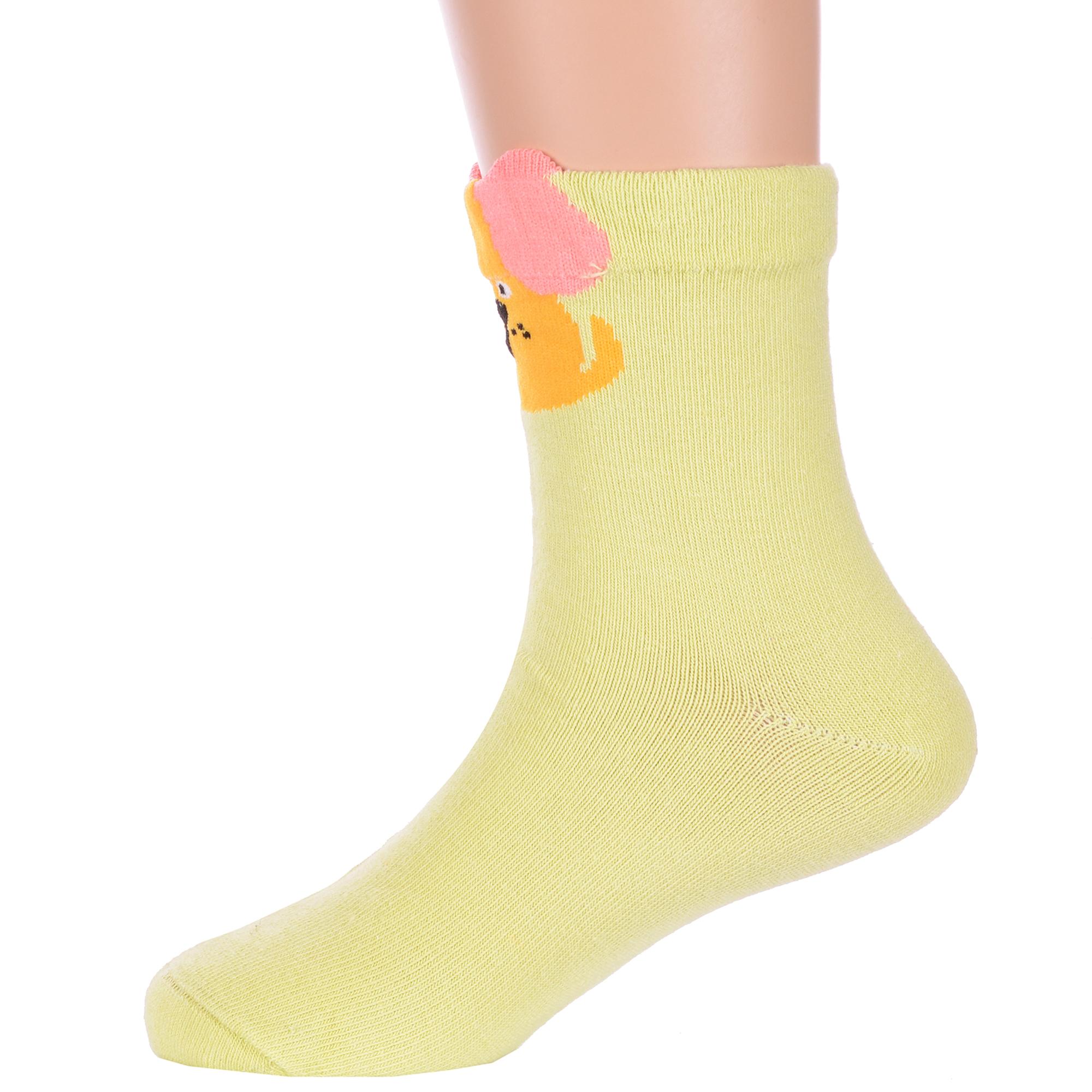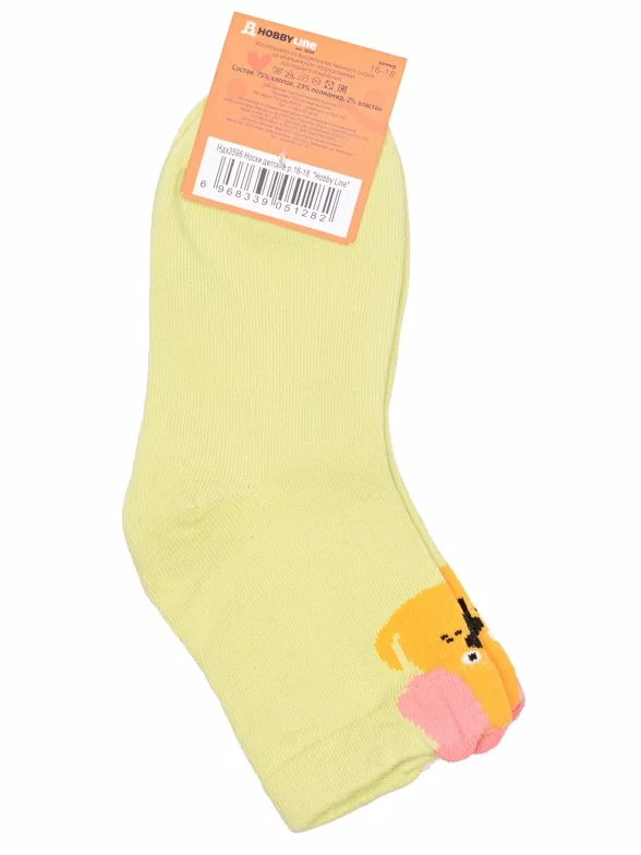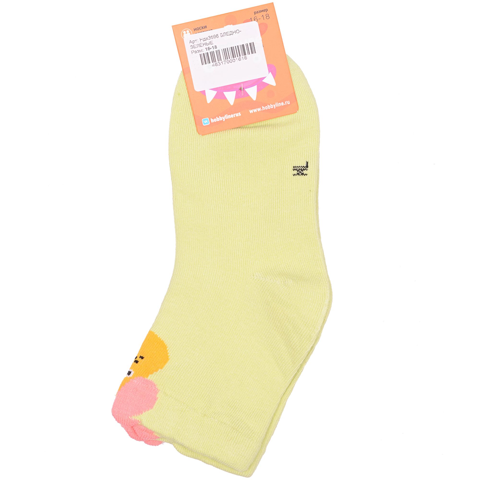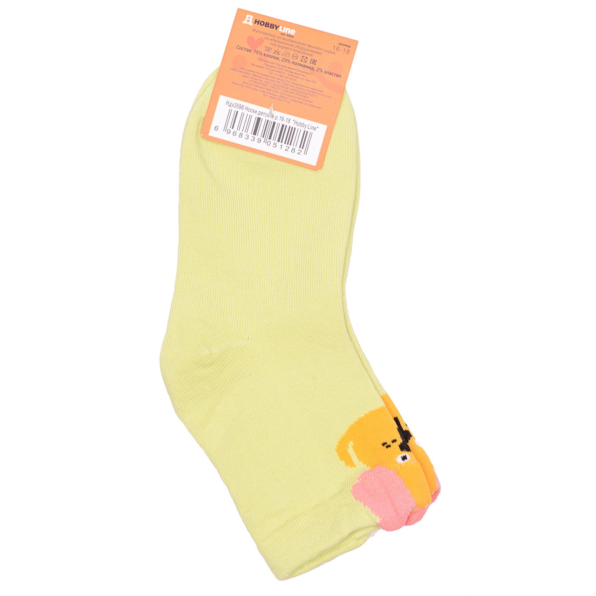 Круглогодичные укороченные детские носки, цвет зеленый, повседневные, шов обычный (не бесшовные), принт (рисунок): животные, с узором, состав: 75% хлопок, 23% полиамид, 2% эластан, арт. Ндх3596. Производитель «Китай, страна бренда - Россия» под брендом «Hobby line».