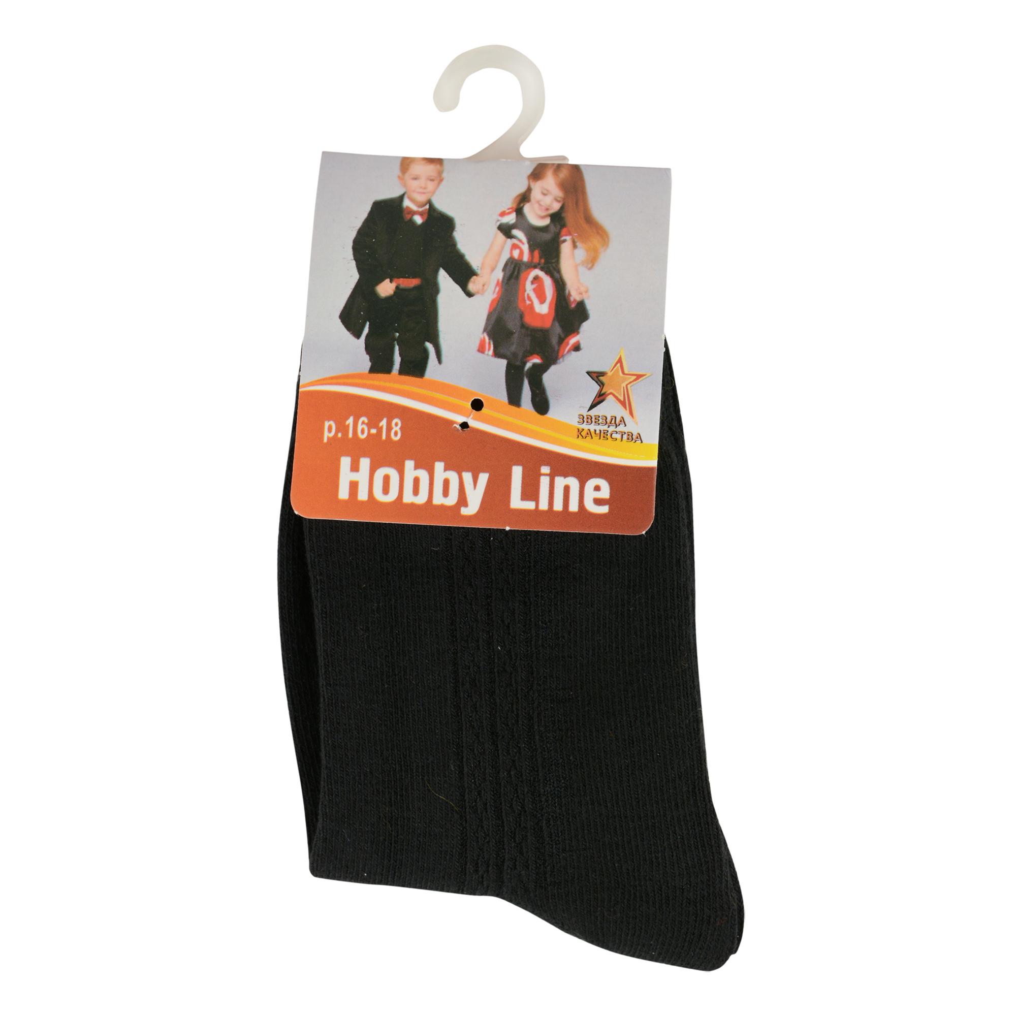 Круглогодичные средней длины детские носки, цвет черный, классические, шов обычный (не бесшовные), принт (рисунок): орнамент, однотонный, с узором, состав: 75% хлопок, 23% полиамид, 2% эластан, арт. 139. Производитель «Китай, страна бренда - Россия» под брендом «Hobby line».