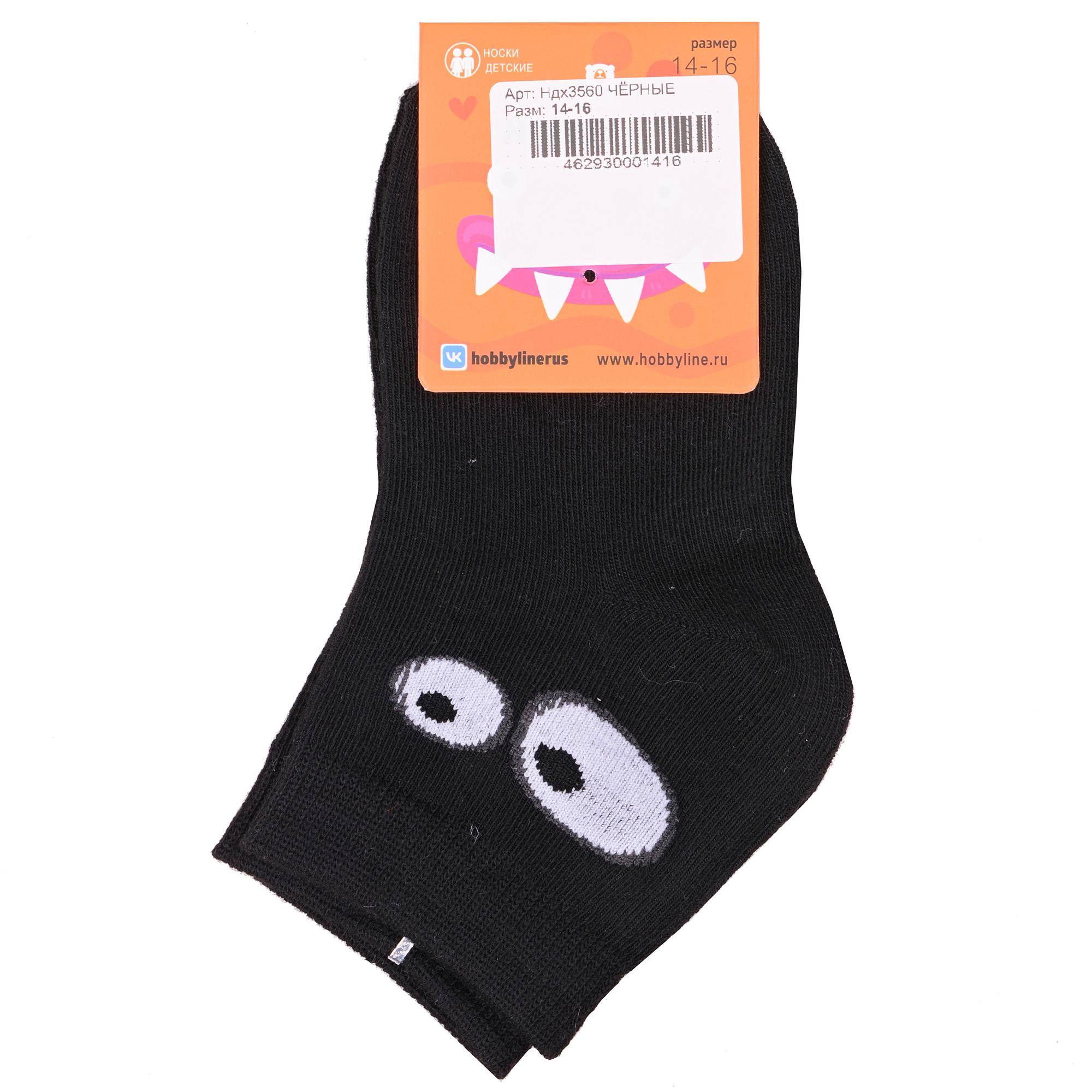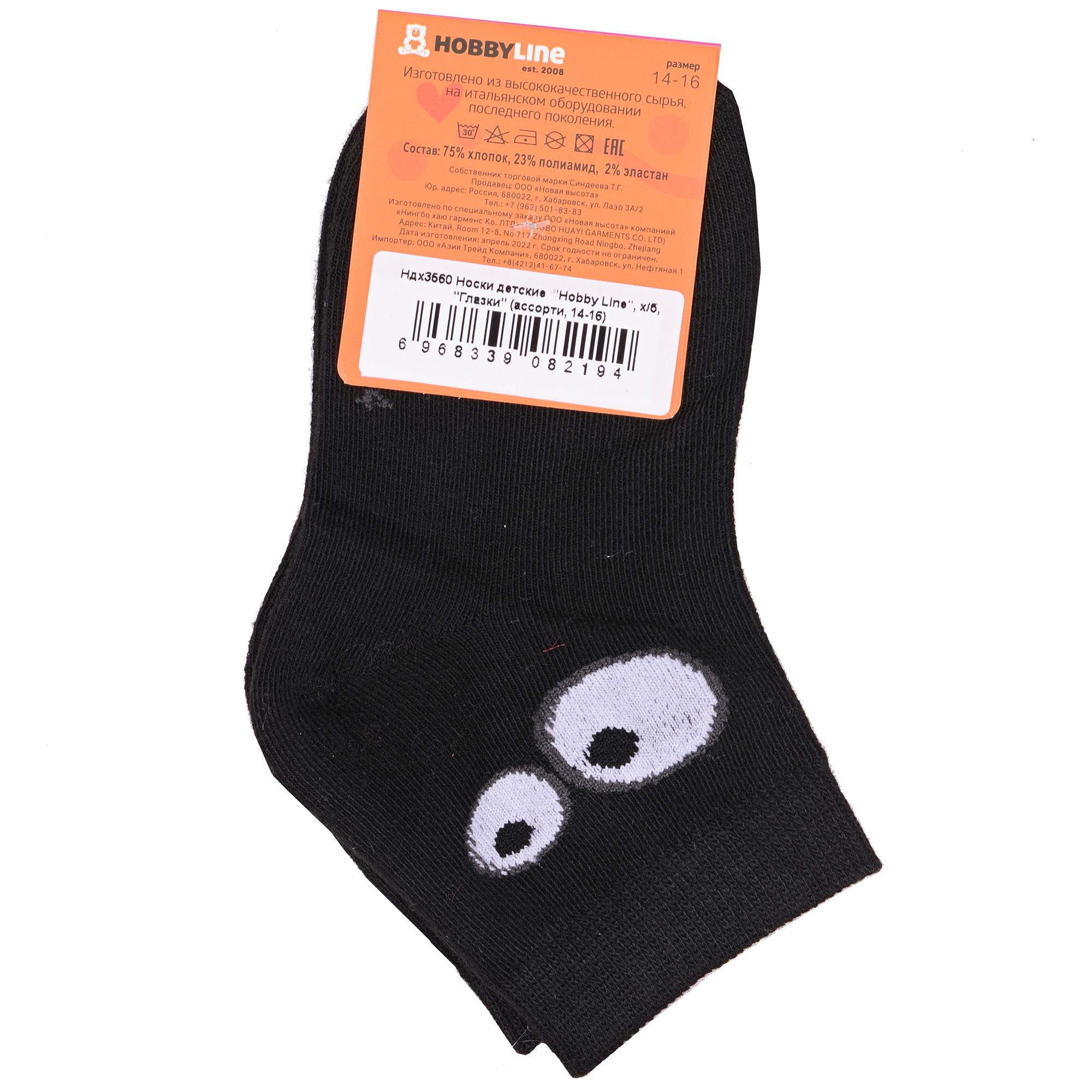 Круглогодичные укороченные детские носки, цвет черный, повседневные, шов обычный (не бесшовные), принт (рисунок): с узором, состав: 75% хлопок, 23% полиамид, 2% эластан, арт. Ндх3560. Производитель «Китай, страна бренда - Россия» под брендом «Hobby line».