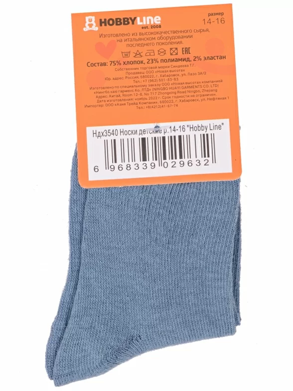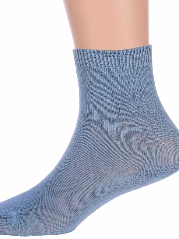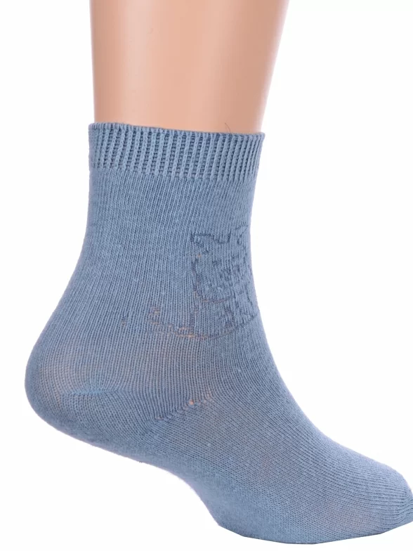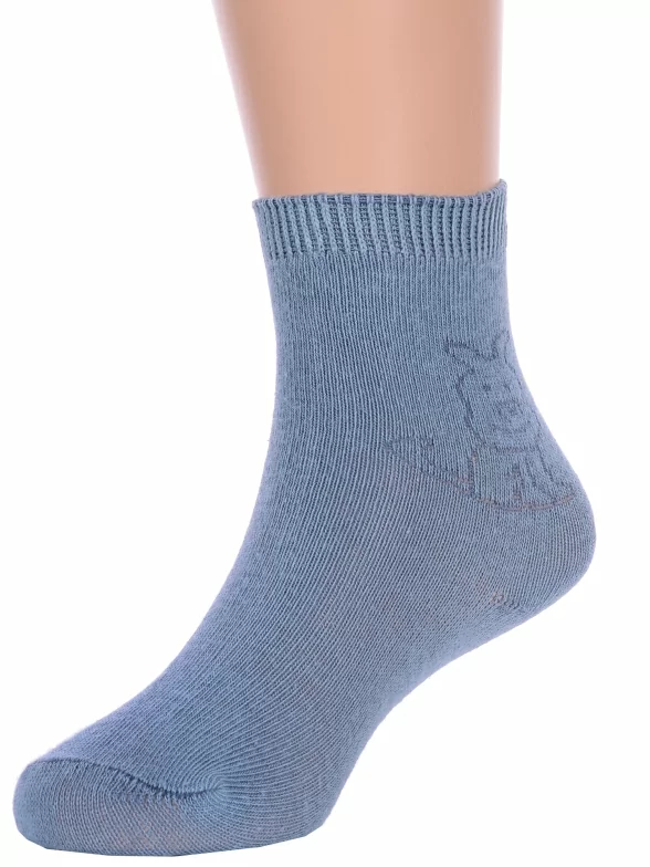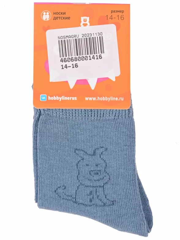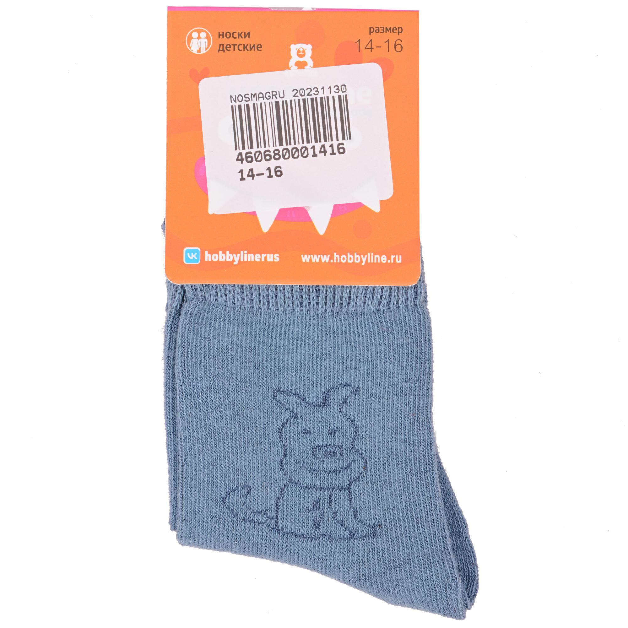 Круглогодичные укороченные детские носки, цвет джинс, повседневные, шов обычный (не бесшовные), принт (рисунок): животные, с узором, однотонный, состав: 75% хлопок, 23% полиамид, 2% эластан, арт. Ндх3540. Производитель «Китай, страна бренда - Россия» под брендом «Hobby line».