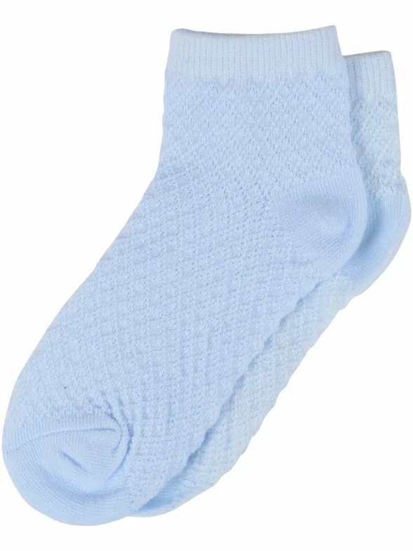 Круглогодичные укороченные детские носки, цвет голубой, в сеточку, классические, шов обычный (не бесшовные), принт (рисунок): однотонный, с узором, клетка, состав: 75% хлопок, 23% полиамид, 2% эластан, арт. 123. Производитель «Китай, страна бренда - Россия» под брендом «Hobby line».