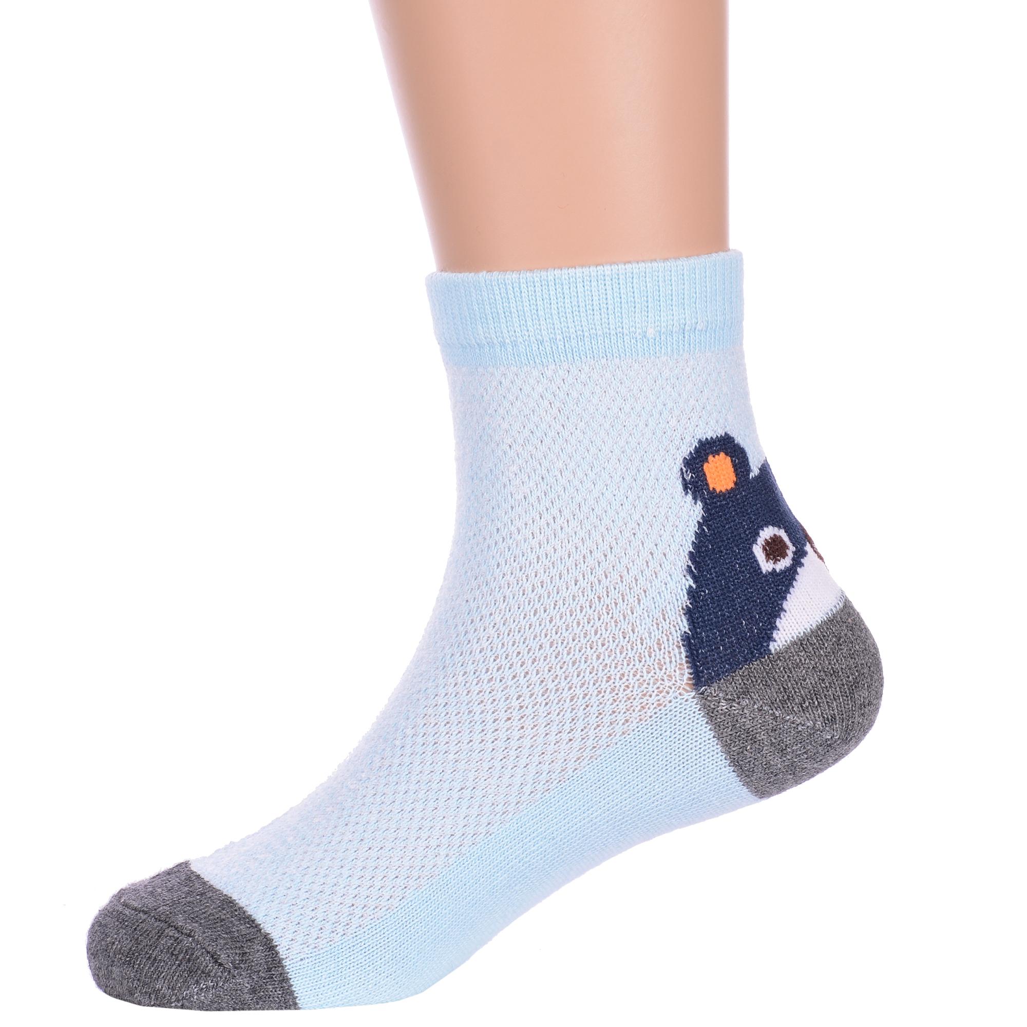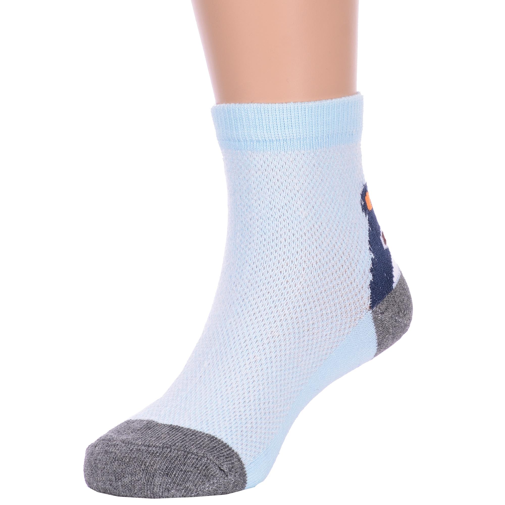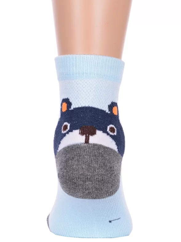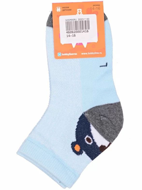 Летние укороченные детские носки, цвет голубой, повседневные, в сеточку, шов обычный (не бесшовные), принт (рисунок): контрастные пятка / мысок / резинка, животные, с узором, состав: 75% хлопок, 23% полиамид, 2% эластан, арт. Ндх3567. Производитель «Китай, страна бренда - Россия» под брендом «Hobby line».