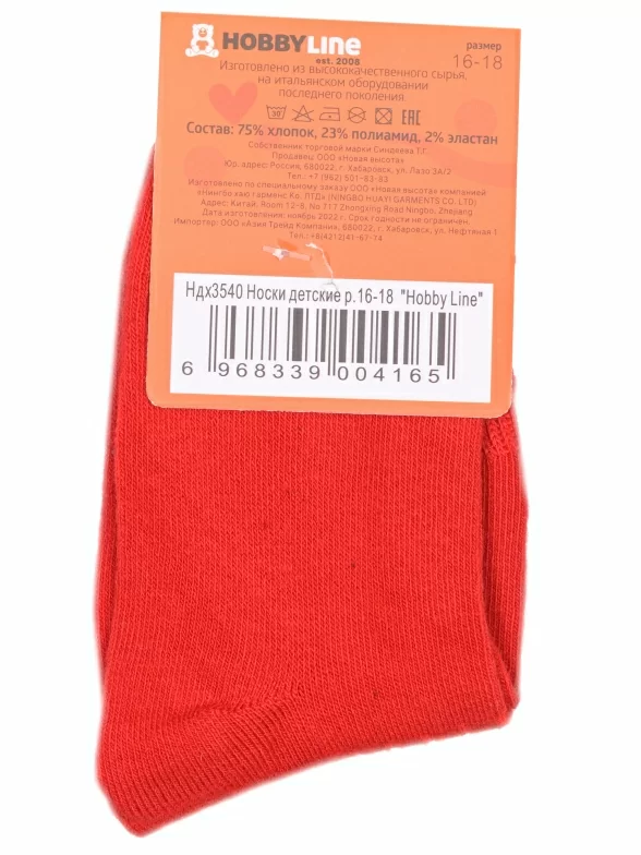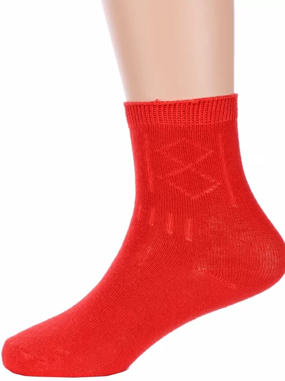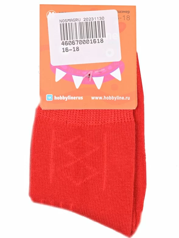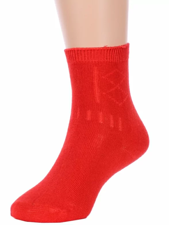 Круглогодичные укороченные детские носки, цвет красный, классические, шов обычный (не бесшовные), принт (рисунок): аргайл, с узором, однотонный, состав: 75% хлопок, 23% полиамид, 2% эластан, арт. Ндх3540. Производитель «Китай, страна бренда - Россия» под брендом «Hobby line».
