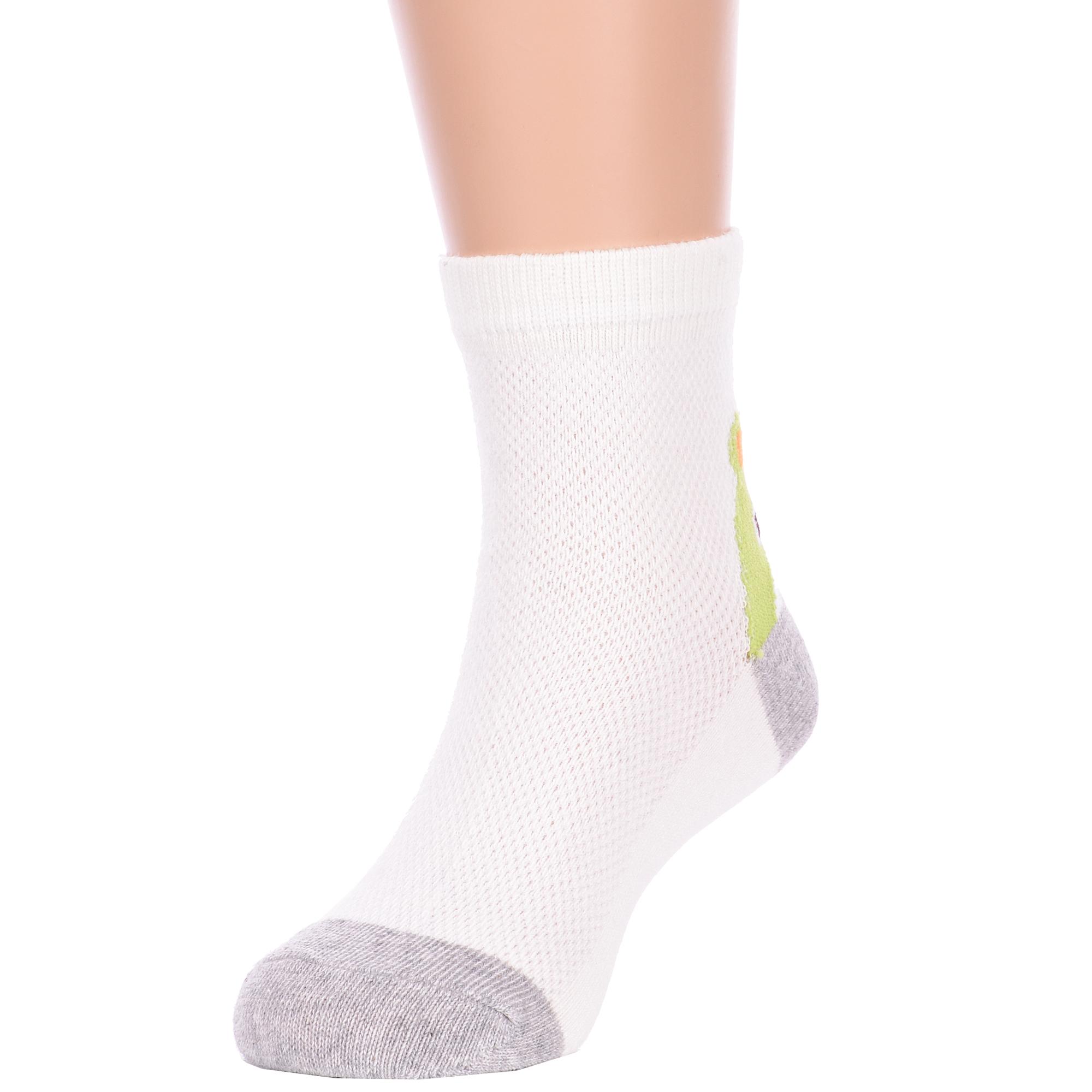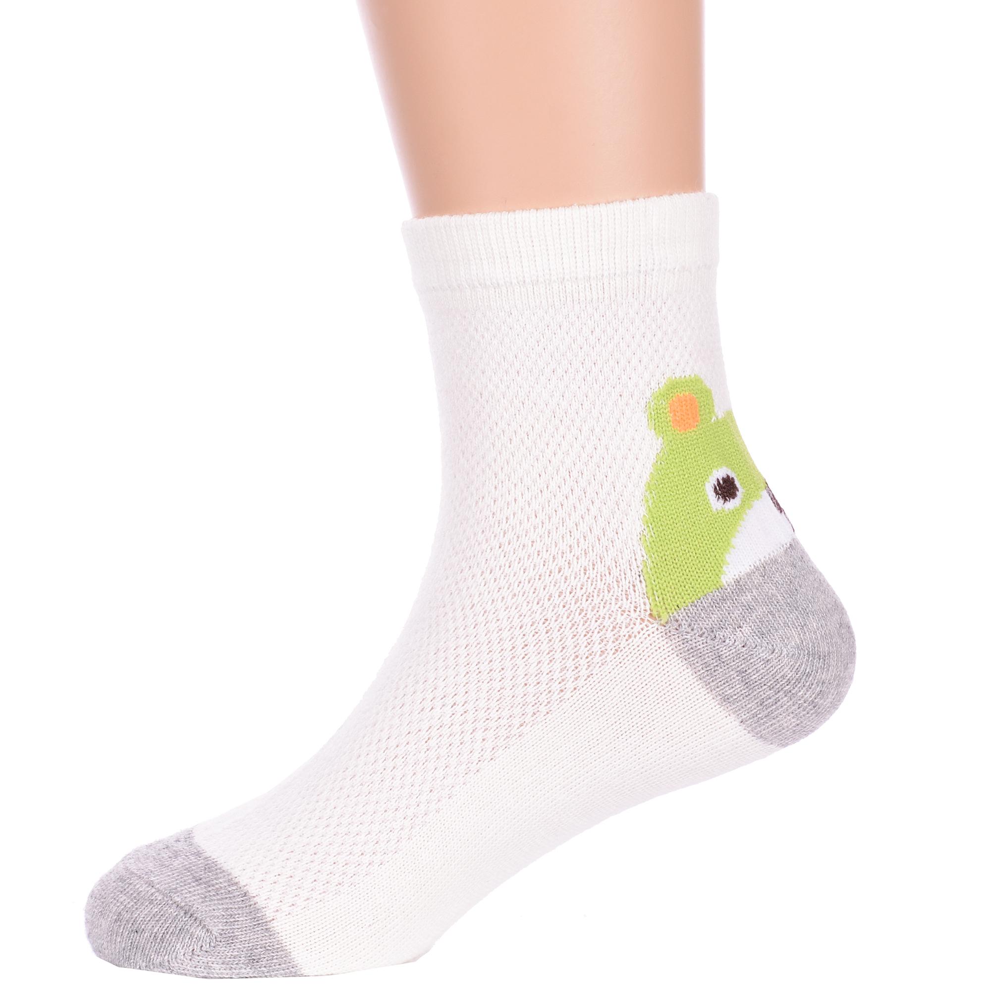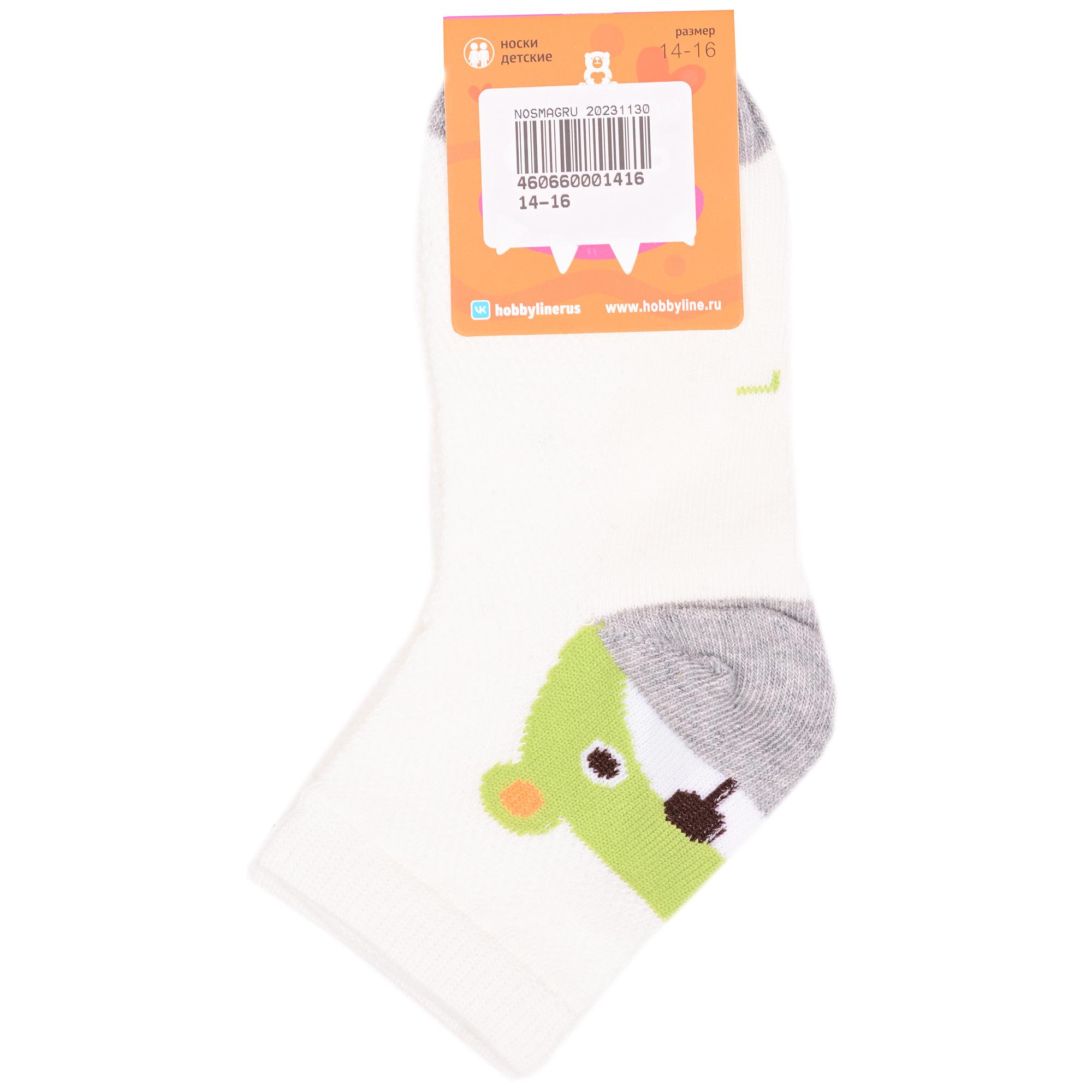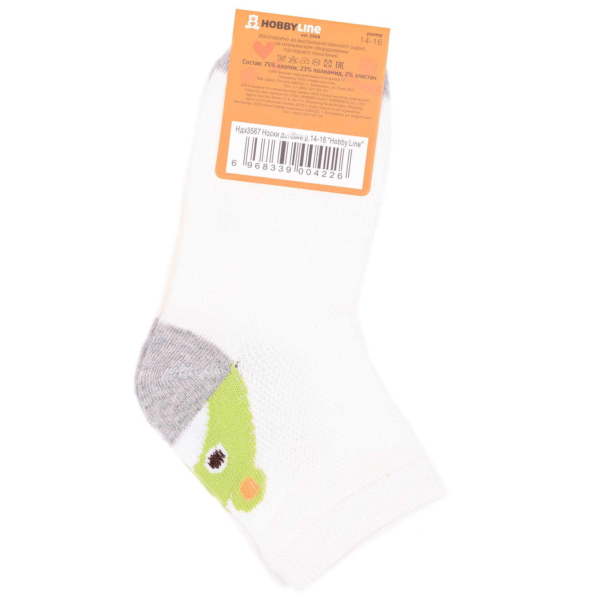 Летние укороченные детские носки, цвет кремовый-зеленый, повседневные, в сеточку, шов обычный (не бесшовные), принт (рисунок): контрастные пятка / мысок / резинка, животные, с узором, состав: 75% хлопок, 23% полиамид, 2% эластан, арт. Ндх3567. Производитель «Китай, страна бренда - Россия» под брендом «Hobby line».