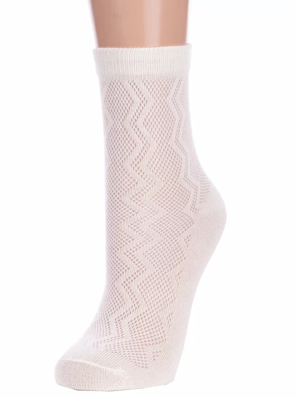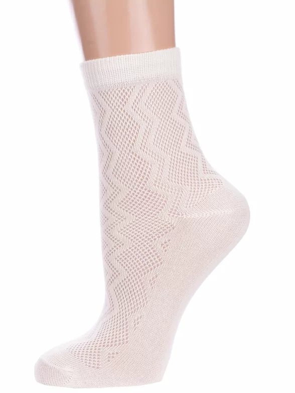 Летние укороченные детские носки, цвет кремовый, в сеточку, ажурные, шов обычный (не бесшовные), принт (рисунок): зигзаг / молния, с узором, однотонный, состав: 75% хлопок, 23% полиамид, 2% эластан, арт. Ндх3538. Производитель «Китай, страна бренда - Россия» под брендом «Hobby line».