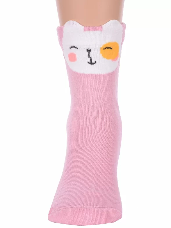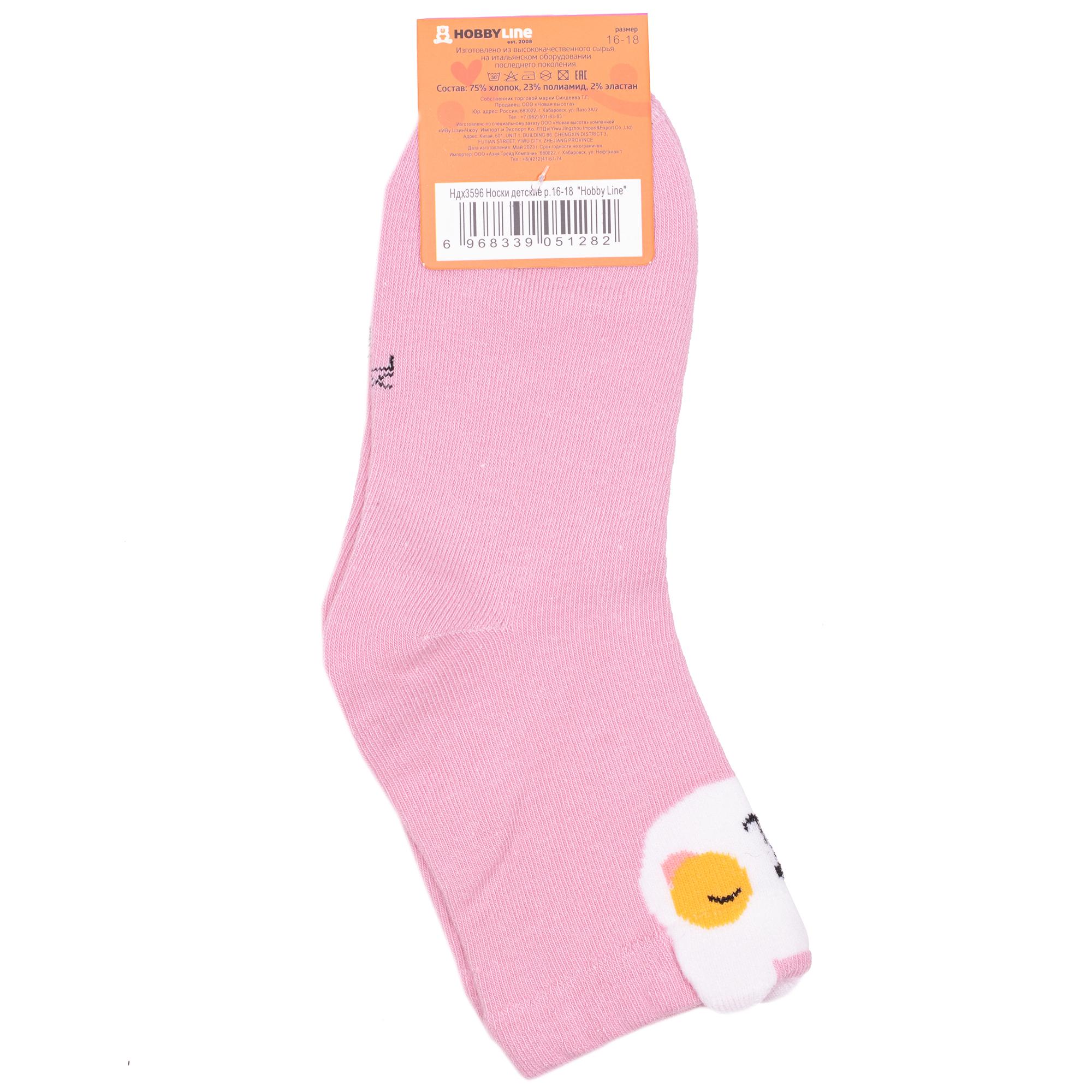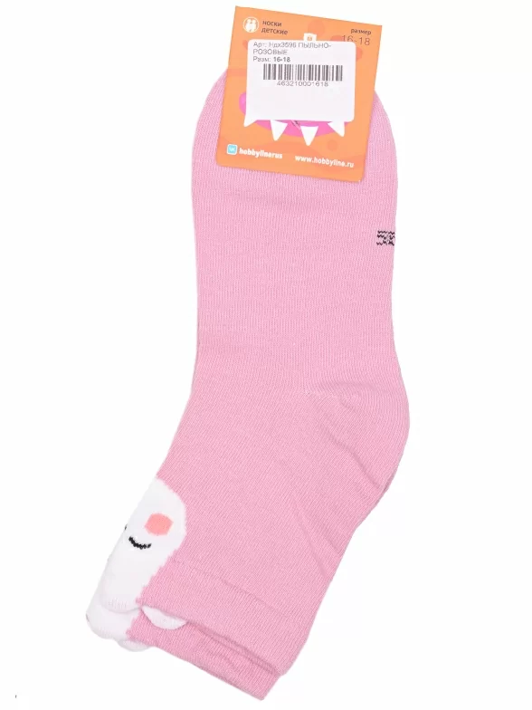 Круглогодичные укороченные детские носки, цвет розовый, повседневные, шов обычный (не бесшовные), принт (рисунок): животные, с узором, состав: 75% хлопок, 23% полиамид, 2% эластан, арт. Ндх3596. Производитель «Китай, страна бренда - Россия» под брендом «Hobby line».