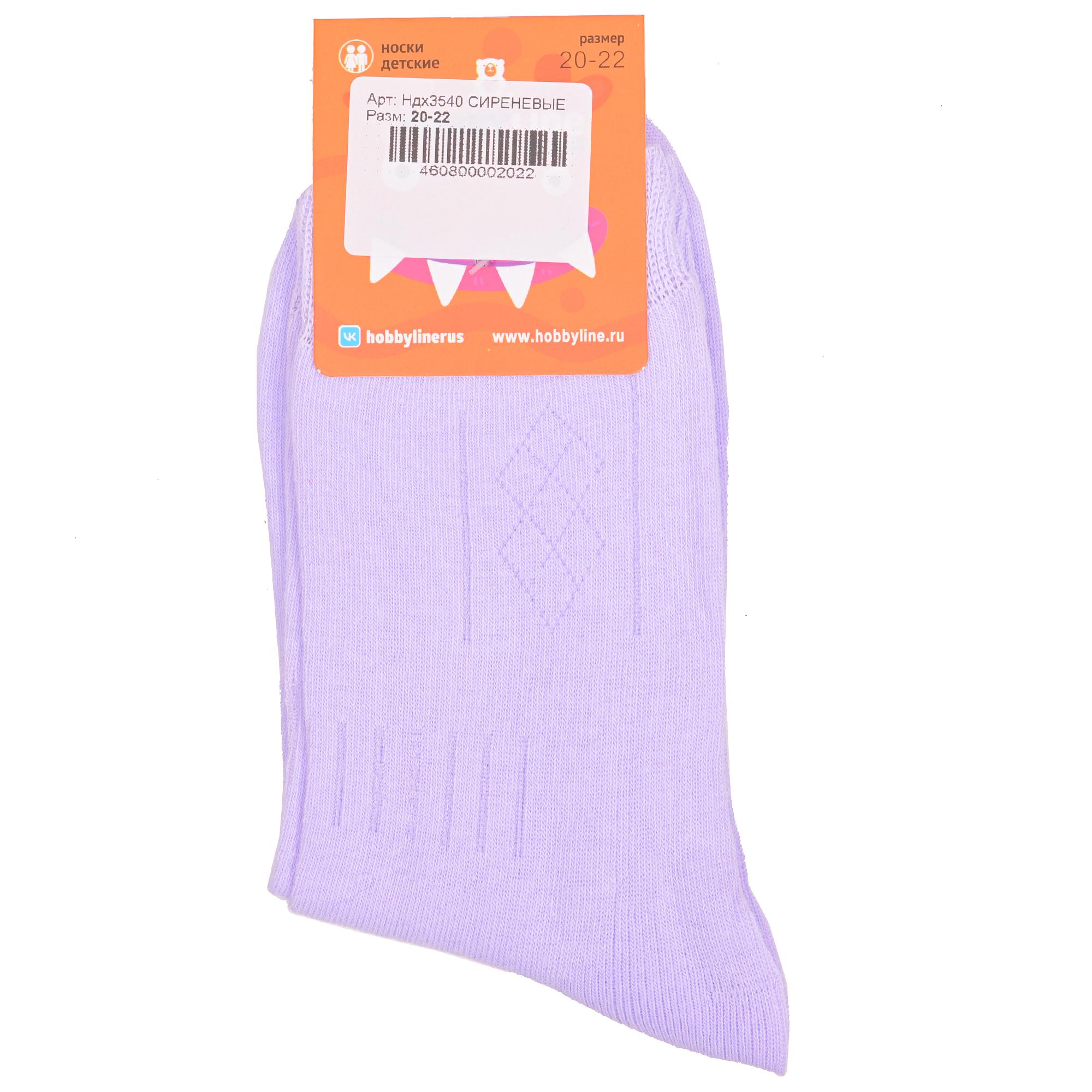 Круглогодичные средней длины детские носки, цвет сиреневый, классические, шов обычный (не бесшовные), принт (рисунок): аргайл, с узором, однотонный, состав: 75% хлопок, 23% полиамид, 2% эластан, арт. Ндх3540. Производитель «Китай, страна бренда - Россия» под брендом «Hobby line».