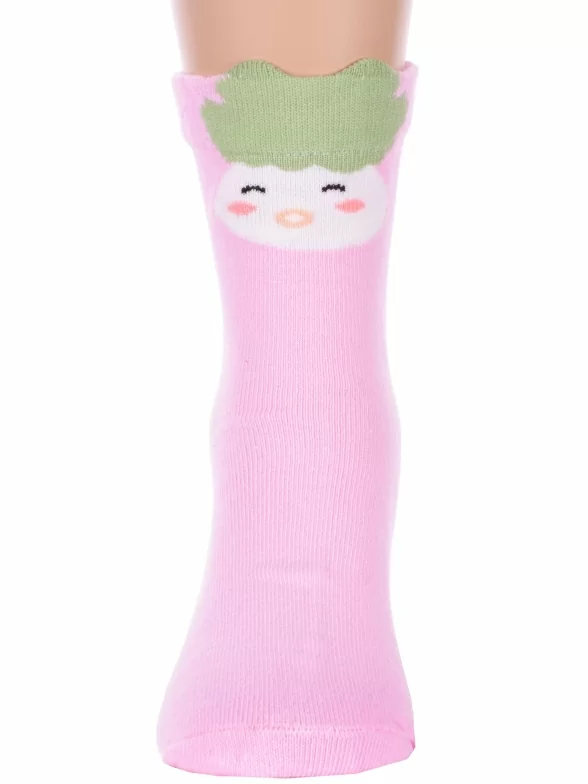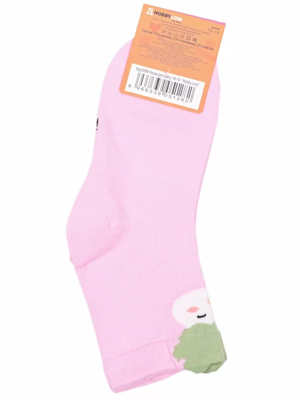 Круглогодичные укороченные детские носки, цвет розовый, повседневные, шов обычный (не бесшовные), принт (рисунок): животные, с узором, состав: 75% хлопок, 23% полиамид, 2% эластан, арт. Ндх3596. Производитель «Китай, страна бренда - Россия» под брендом «Hobby line».