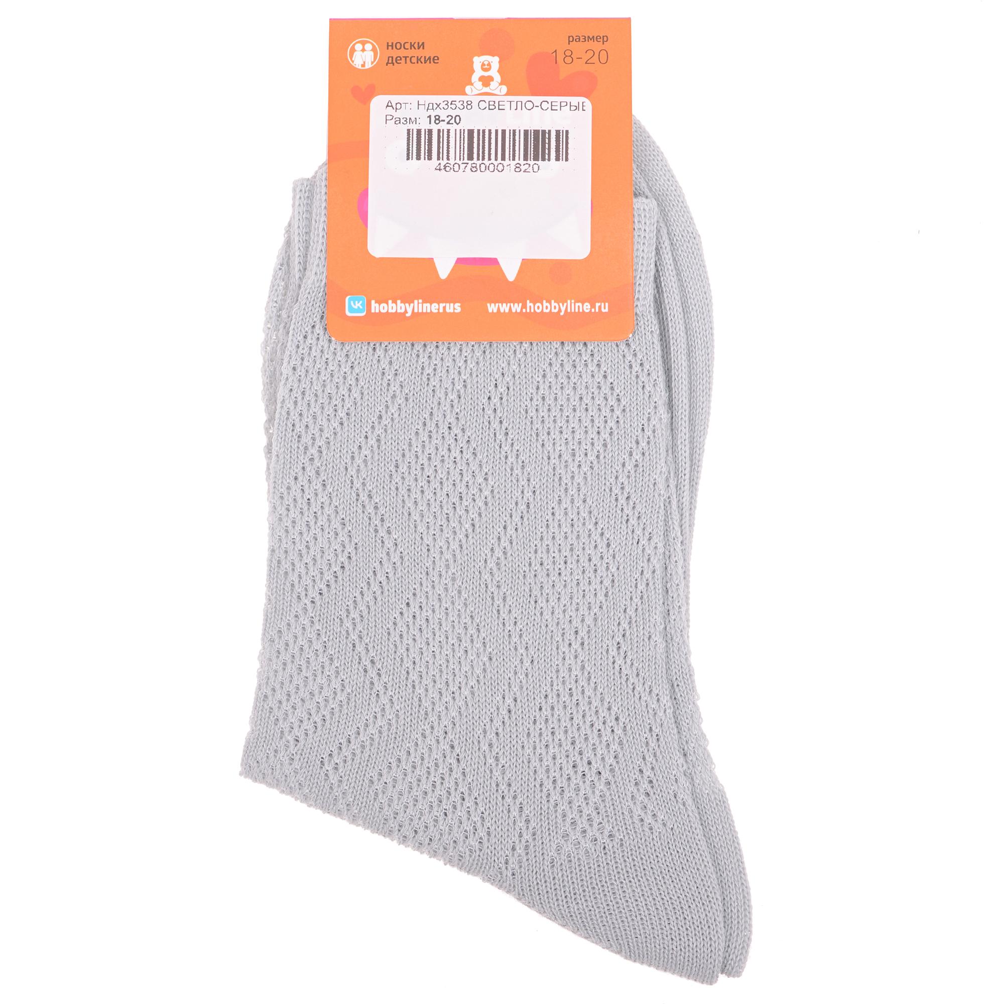 Летние средней длины детские носки, цвет светло-серый, в сеточку, ажурные, шов обычный (не бесшовные), принт (рисунок): зигзаг / молния, с узором, однотонный, состав: 75% хлопок, 23% полиамид, 2% эластан, арт. Ндх3538. Производитель «Китай, страна бренда - Россия» под брендом «Hobby line».