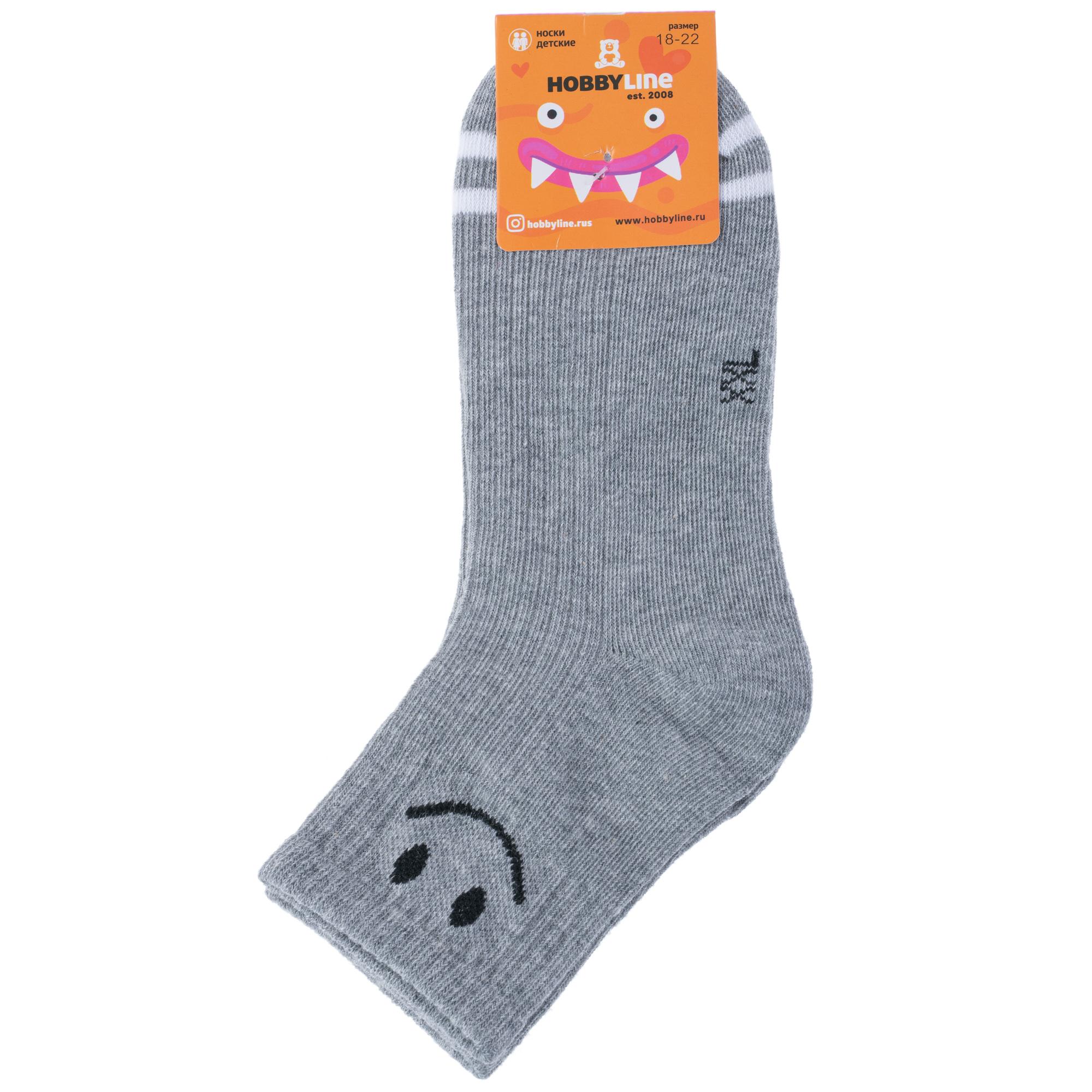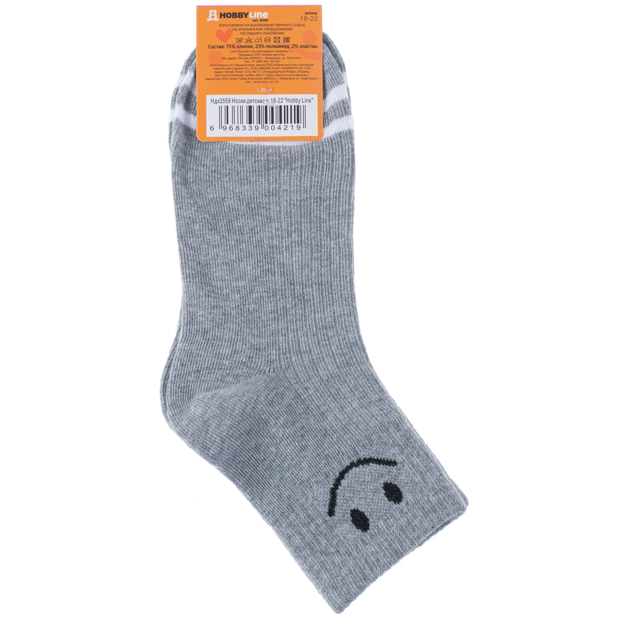 Круглогодичные укороченные детские носки, цвет светло-серый, повседневные, шов обычный (не бесшовные), принт (рисунок): люди, в рубчик, с узором, состав: 75% хлопок, 23% полиамид, 2% эластан, арт. 3559. Производитель «Китай, страна бренда - Россия» под брендом «Hobby line».