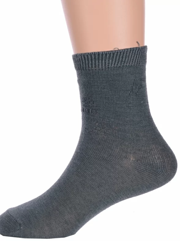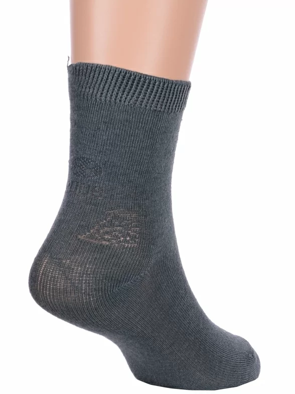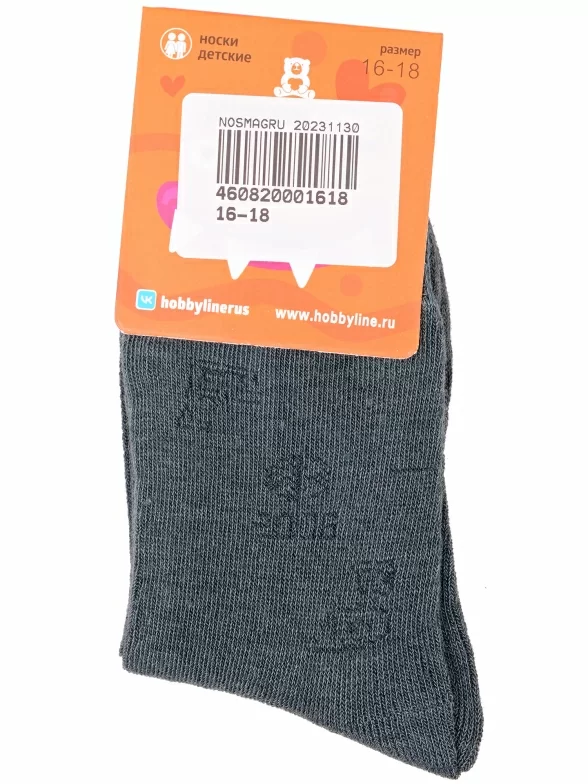 Круглогодичные укороченные детские носки, цвет темно-серый, классические, шов обычный (не бесшовные), принт (рисунок): с узором, однотонный, состав: 75% хлопок, 23% полиамид, 2% эластан, арт. Ндх3540. Производитель «Китай, страна бренда - Россия» под брендом «Hobby line».