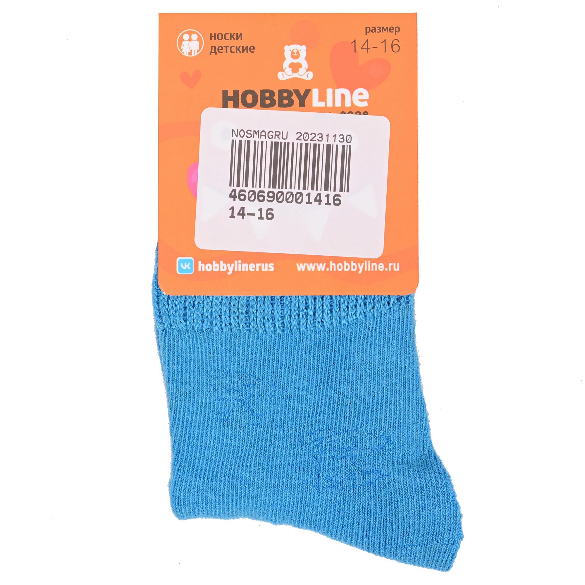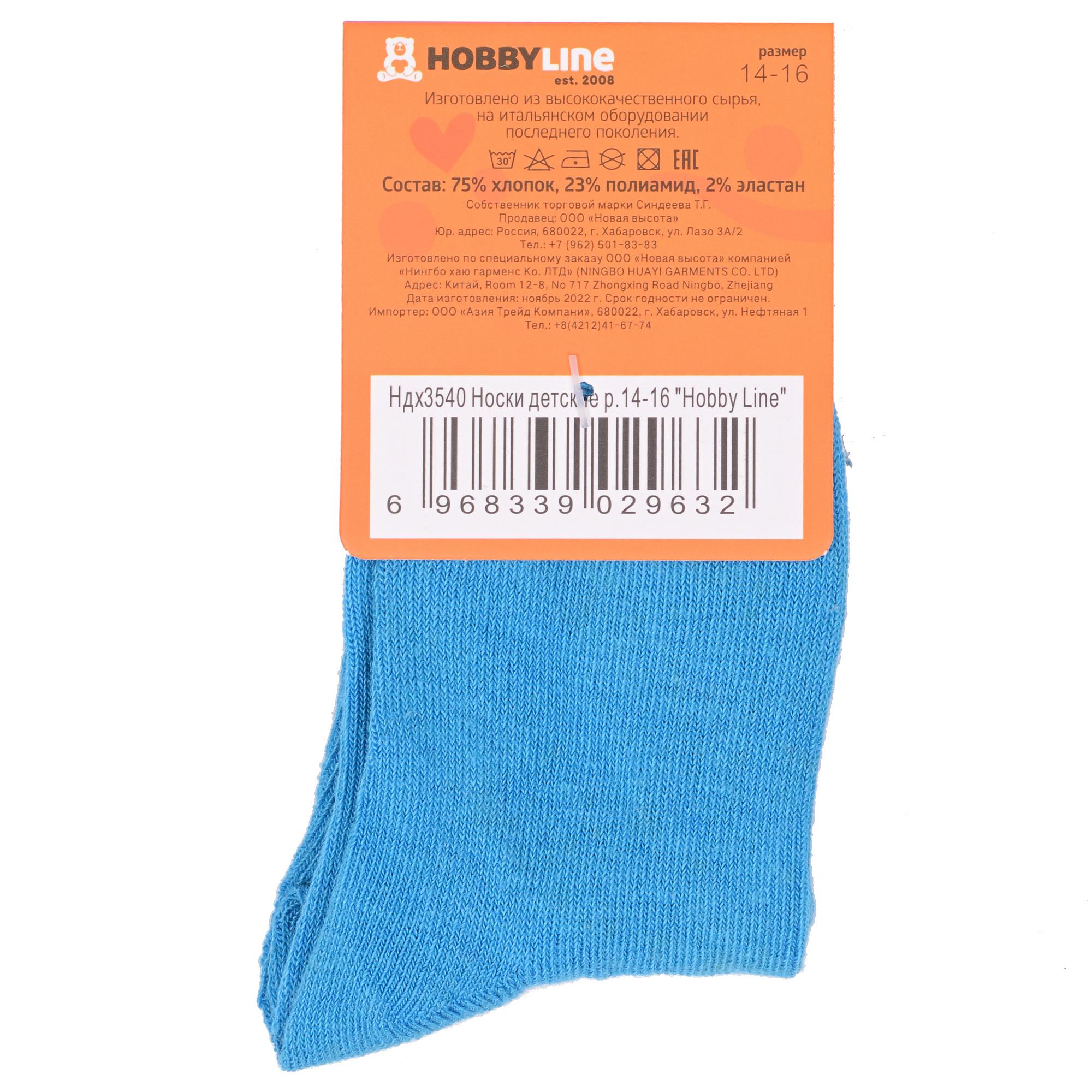 Круглогодичные укороченные детские носки, цвет голубой, классические, шов обычный (не бесшовные), принт (рисунок): однотонный, без рисунков/узоров, состав: 75% хлопок, 23% полиамид, 2% эластан, арт. Ндх3540. Производитель «Китай, страна бренда - Россия» под брендом «Hobby line».